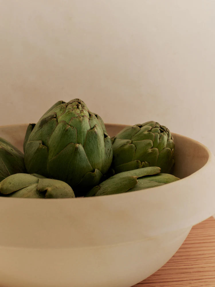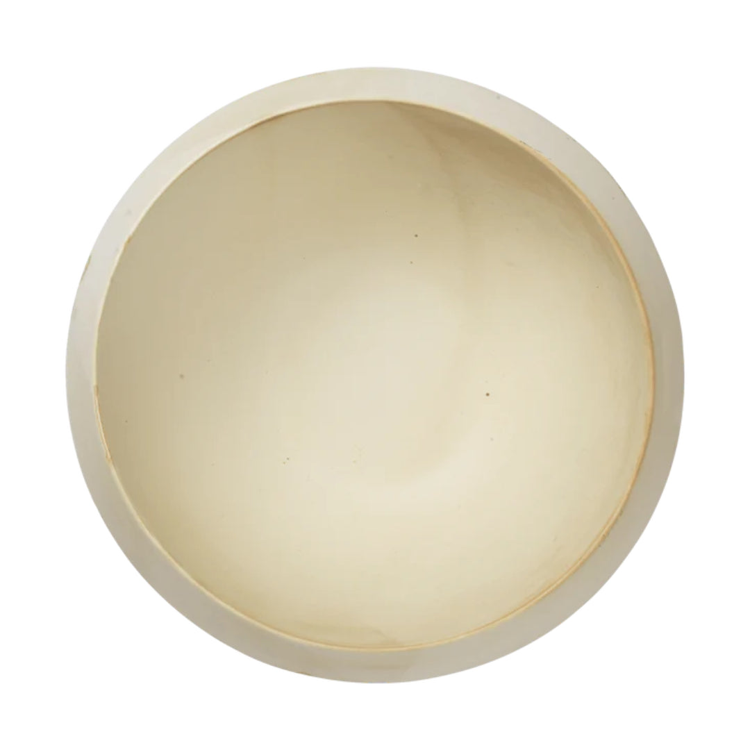 Crafted from stoneware with a reactive cream glaze, the Ferm Living Erena Serving Bowl - Ø32 is a unique piece. Display it solo or alongside the full Erena collection to bring an artful touch to your table. The Erena Series by Ferm Living honors Mediterranean heritage and Mallorca’s rich culinary traditions, with conical shapes inspired by the North African ‘tajine’ and the distinct triangular forms of Can Lis' roof.
