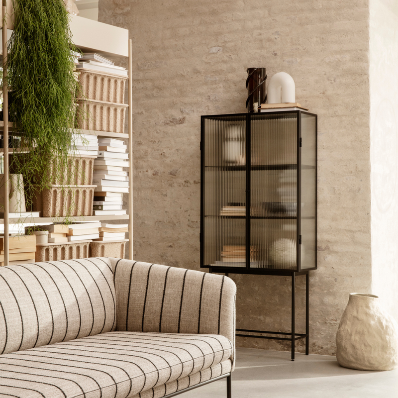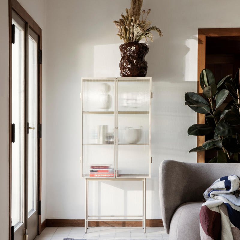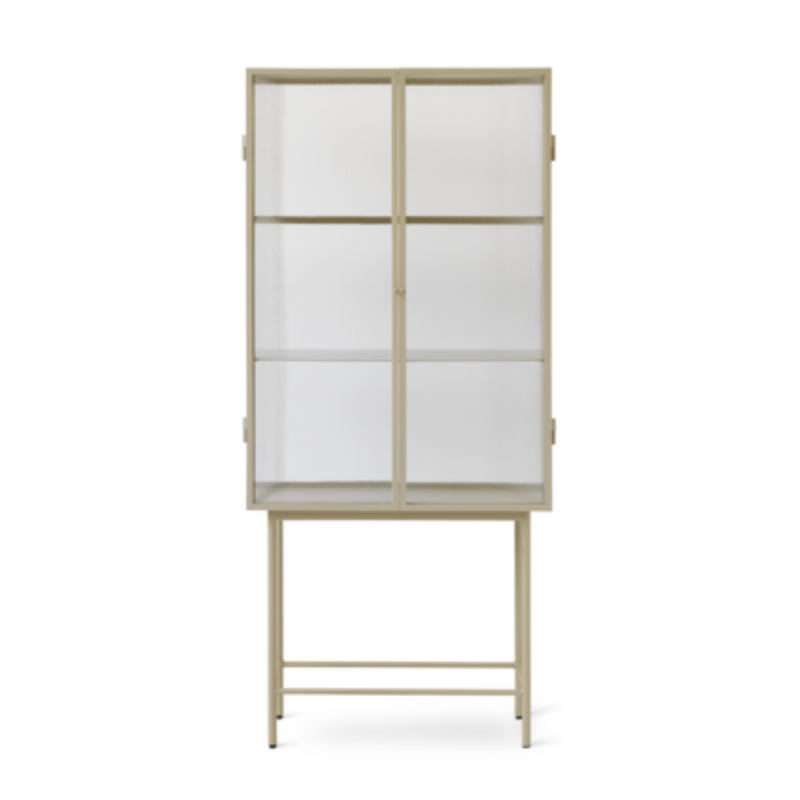 This sleek and versatile storage solution goes nicely in any design style. The glass doors, which come in a beautiful wired glass or ripple glass texture, open seamlessly and quietly thanks to magnets, with two powder-coated metal shelves within. The glass isn't quite see-through, but blurs out its contents like a haze. Use the Haze Vitrine to store everyday essentials in the bathroom, display treasured dinnerware in the dining room, or anywhere else you need storage.