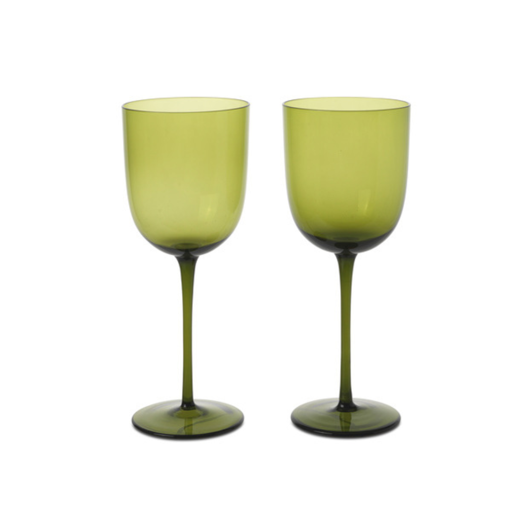 The Host Glassware collection features a range of delicately mouth-blown and stemmed glasses with sharp silhouettes in three beautiful colorways. The Host White Wine Glasses in Moss Green are ideal for hosting dinner parties and intimate gatherings. We love this elegant and classic glassware collection that gives you the freedom to set a table that matches your personal style.