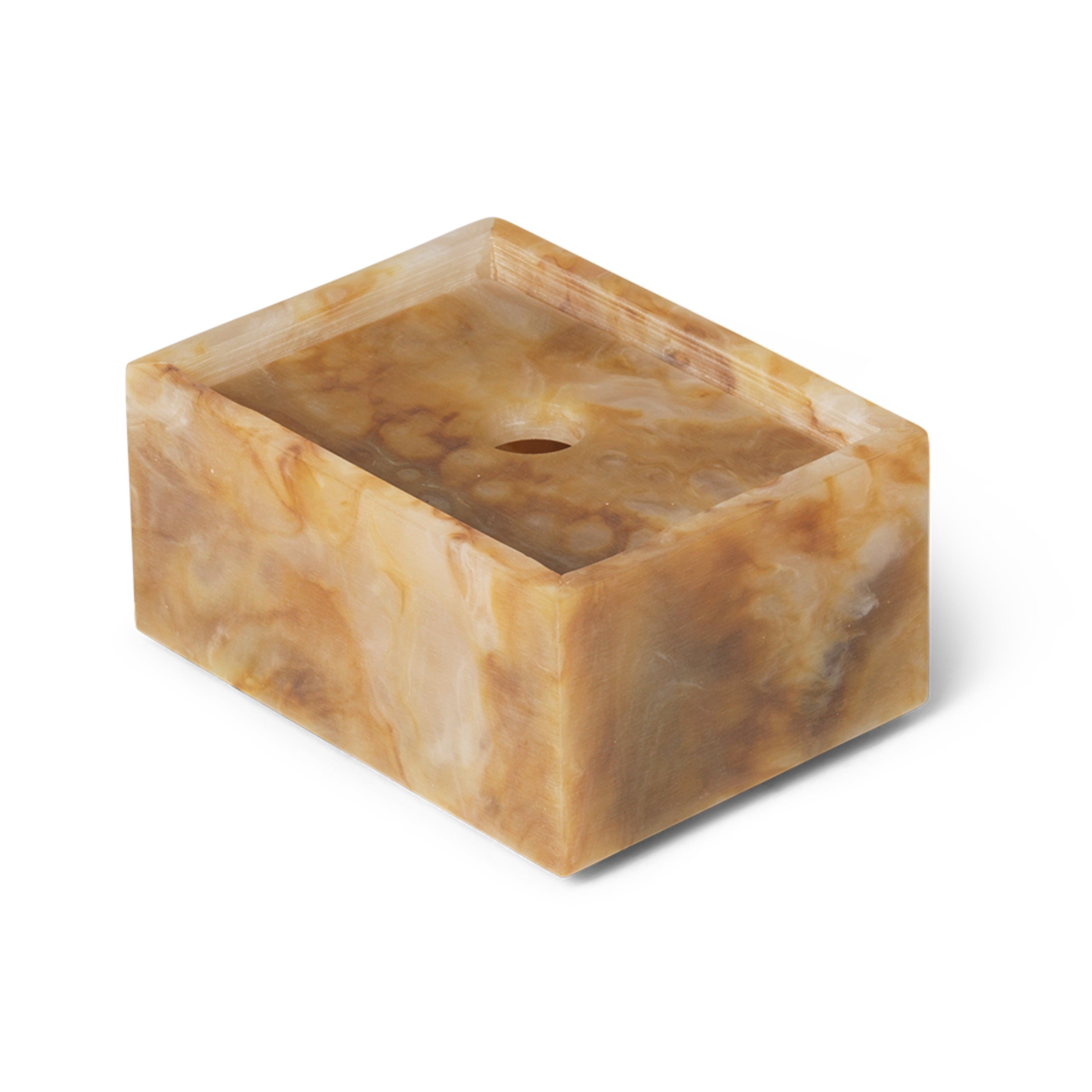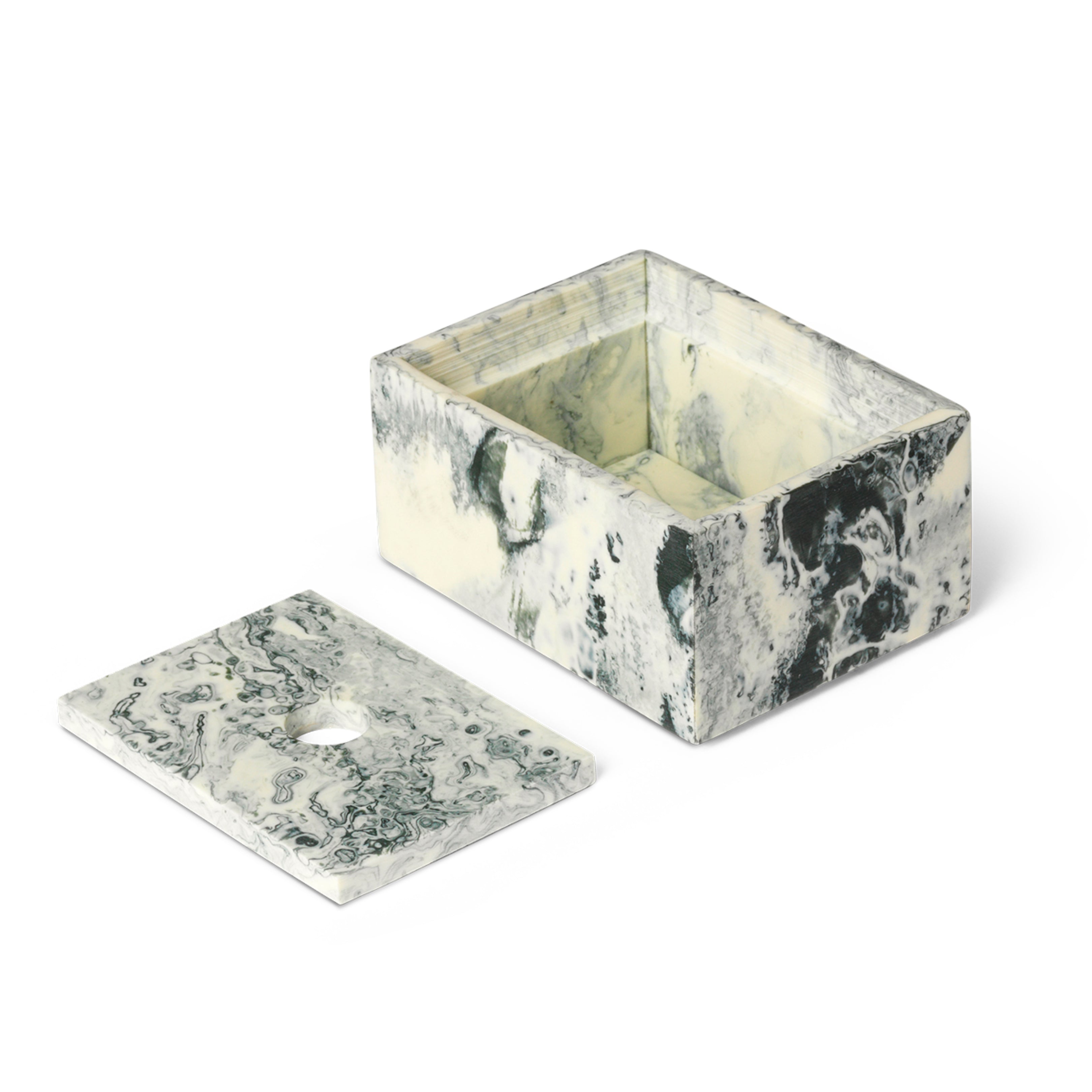 Made from a resin blend, the Mist Box 7.5 x 10 showcases fluid, swirling shapes and delicate tones, ensuring every box is unique. The Ferm Living Mist Series combines playful geometry with practical design in a refined way. Each item in this charming collection allows for personalized arrangements with its interlocking, stackable forms.