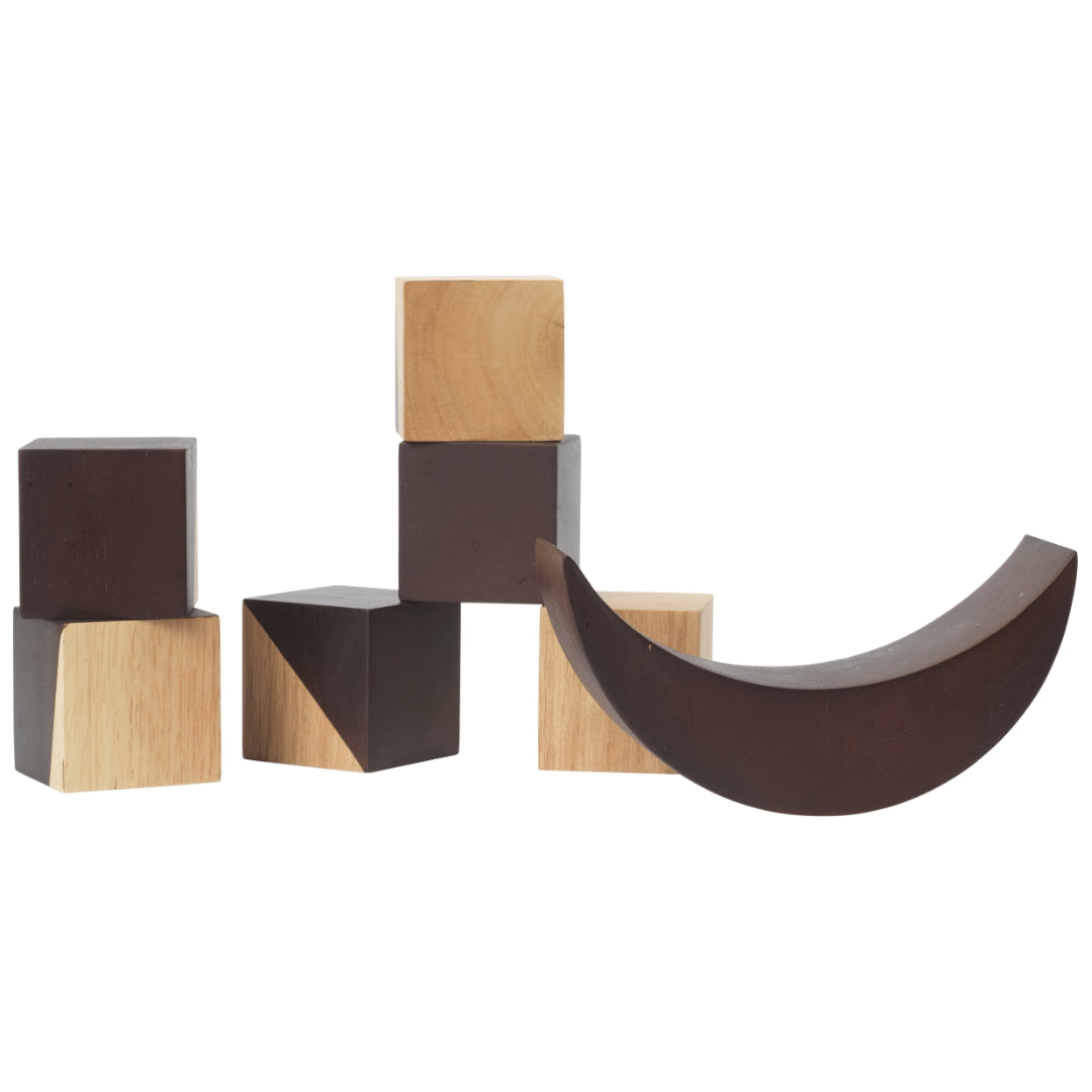 The Ferm Living Phase Building Blocks are inspired by the iconic moon graphics created by Utzon at Can Lis. Designed for children, these blocks spark imagination and geometric exploration, while also serving as a sculptural design element for adult interiors. Made from two contrasting finishes of FSC-certified wood, the celestial-inspired blocks bring a tactile, playful touch to any room.