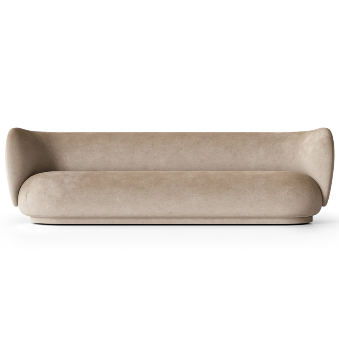 The Ferm Living Rico 4-Seater Sofa in Faded Velvet Sand is a design defined by soft lines and an embracing expression, emphasized by elegant curves. The curvaceous nature of the Rico 4-Seater Sofa adds a modern union of comfort and elegance to any room and makes you feel drawn into its motherly embrace. A visual statement piece bringing furniture and art together, the design works well as casual seating, either alone in a smaller seating area or as part of a larger living space.