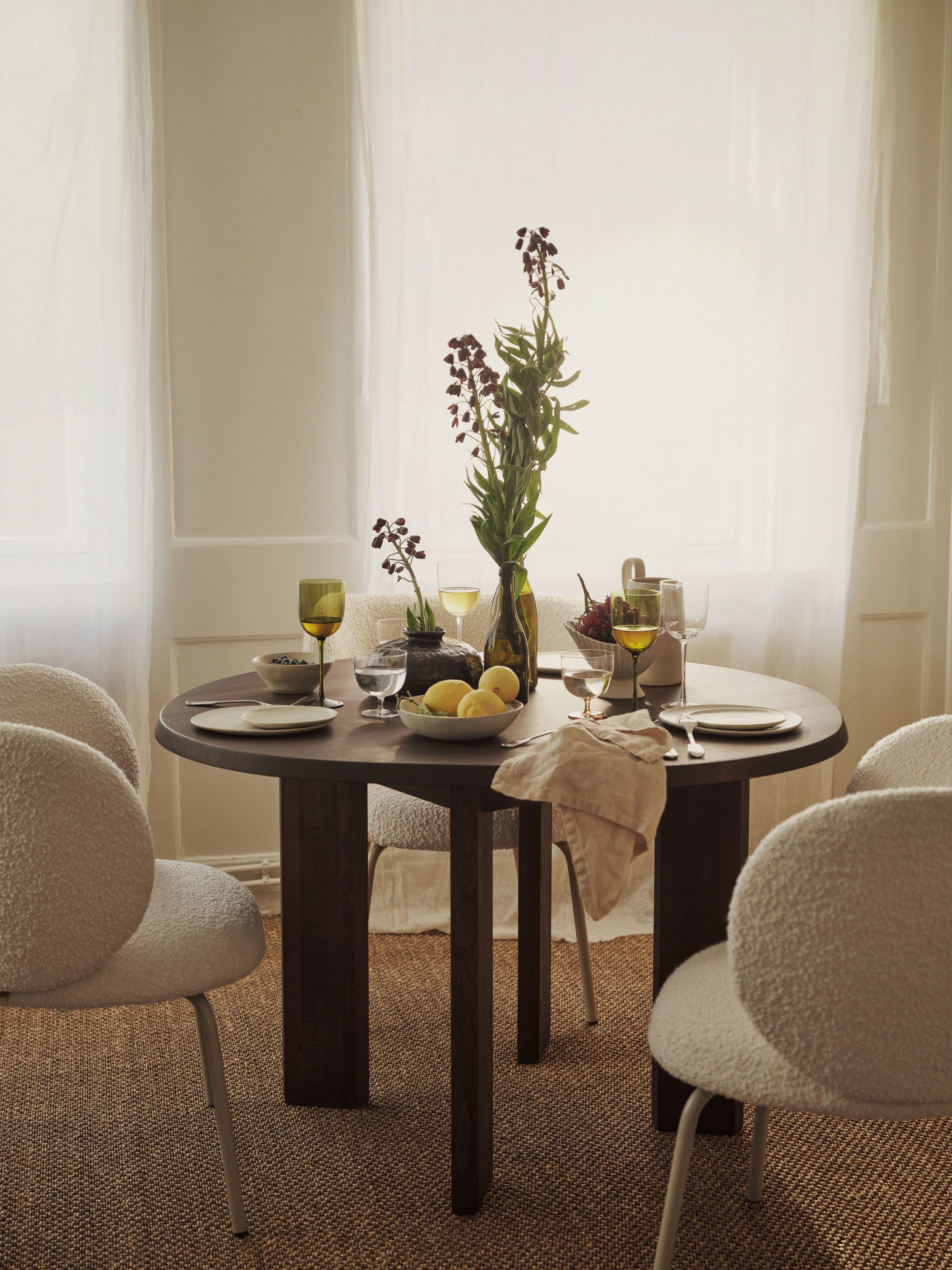 With four elegant tubular steel legs as the base, the Rico Dining Chair in Bouclé Off-White Cashmere presents a refined addition to the Rico family. Place it around the dining table and offer a comfortable and inviting seat during meals, or even use it as a desk chair in your own home or at the office.