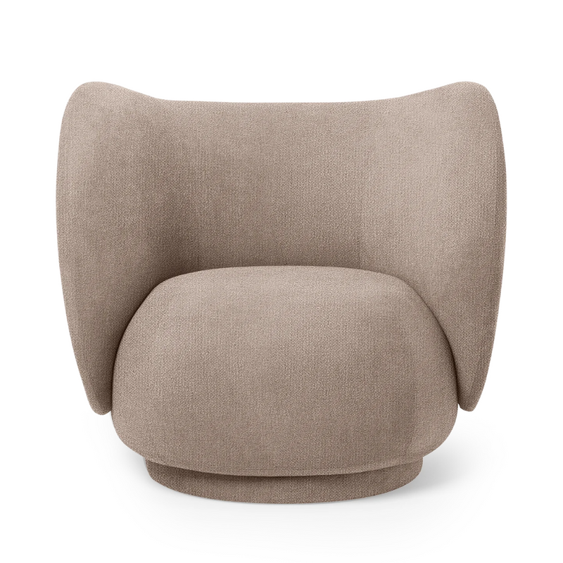 The Rico Lounge Chair in Bouclé Sand presents a refined addition to the Rico family, perfect for living areas, reading nooks, and more. The timeless yet easeful bouclé fabric is woven with uneven yarn to give it a rich, loopy texture.