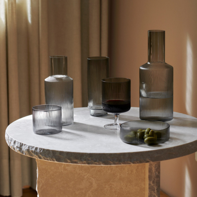 Designed to be served alongside the Ripple Glassware Collection, a collection of mouth-blown glassware with a unique ripple effect. We love the iridescent play of light and textures that appear in the ripples.