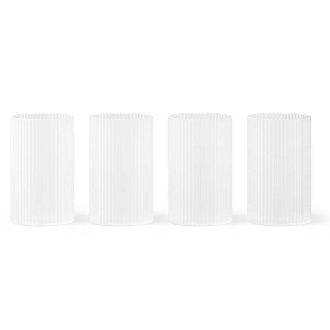 The Frosted Ripple line from Ferm Living introduces a tranquil, modern twist to the timeless Ripple glassware series. Crafted by skilled artisans through mouth-blown techniques, these items maintain their signature rippled texture and angular shapes, now showcased in an exquisite frosted appearance.