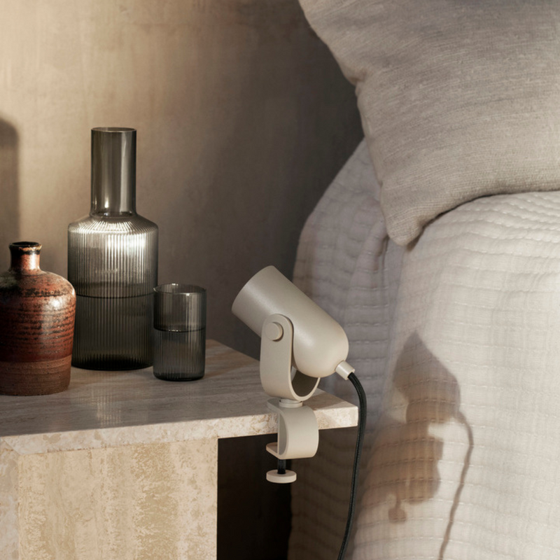Inspired by industrial architecture and engineering, the practical and durable Ruuvi Lamp has a clean yet soft expression. The clamp system allows the lamp to be attached to any surface in the home. Use it to light up a shelving system, to read a book in bed or in a cozy corner, a bright light in the kitchen, or anywhere else you need it. It features practical thumb grip screws that inspired its name.