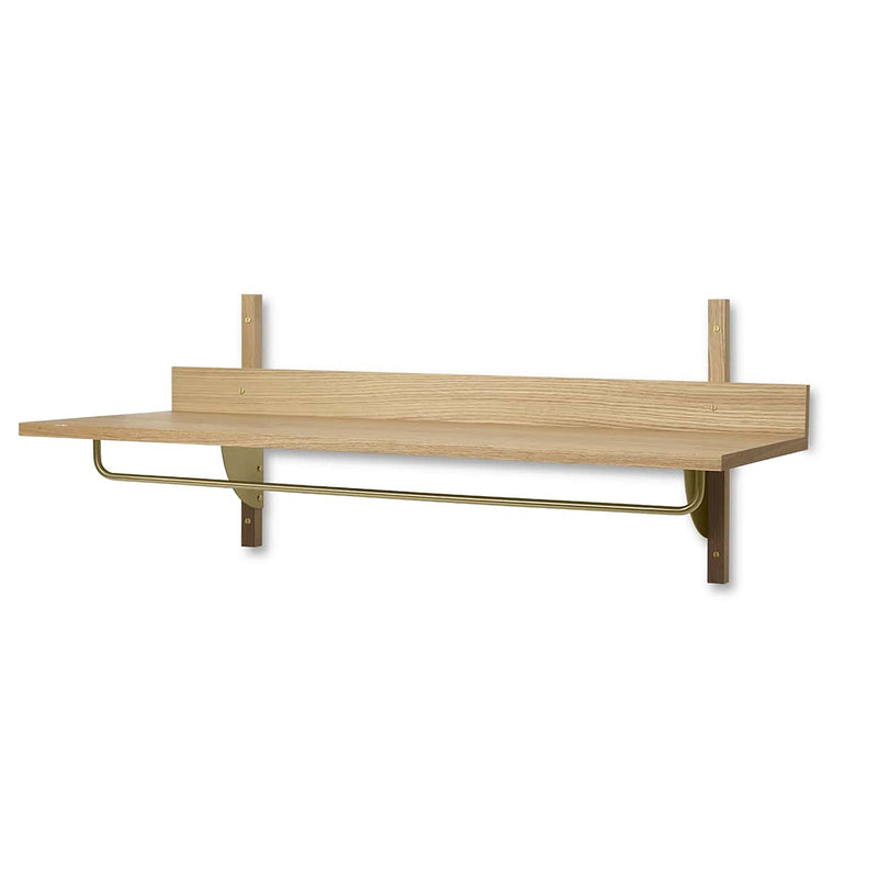 The Ferm Living Sector Rack Shelf is defined by its sturdy simplicity and classic combination of wood and brass.
