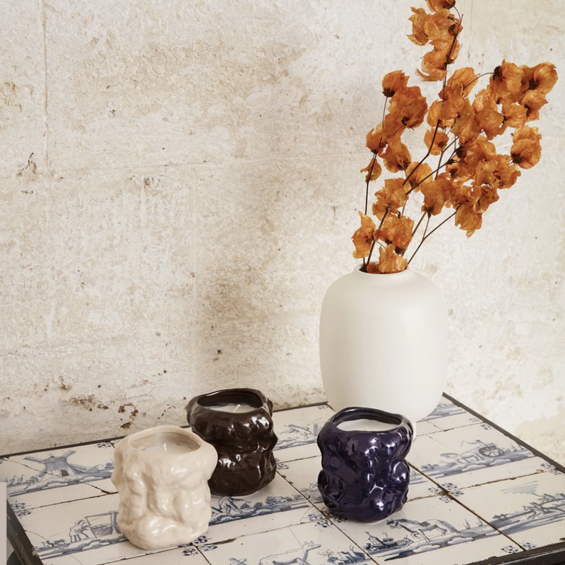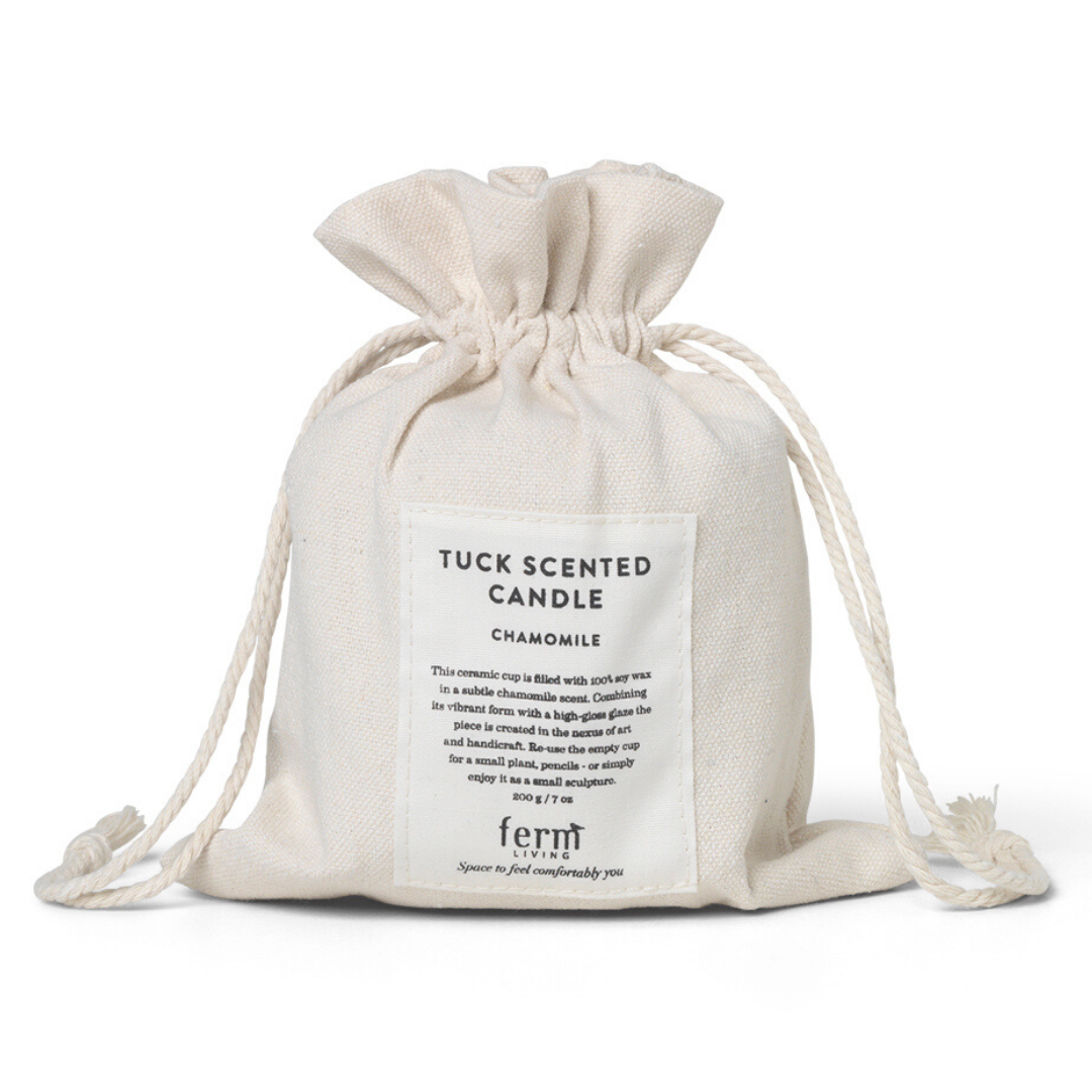 The Ferm Living Tuck Candle replicates the admirable Tuck Vase, with gorgeous yet subtle scents of cashmere, lemongrass and fig. When lit, the candlelight perfectly reflects off the uniquely crumpled surface, mirroring the shape of discarded paper. The richly colored glaze makes these candles perfect for styling in any room of the home.