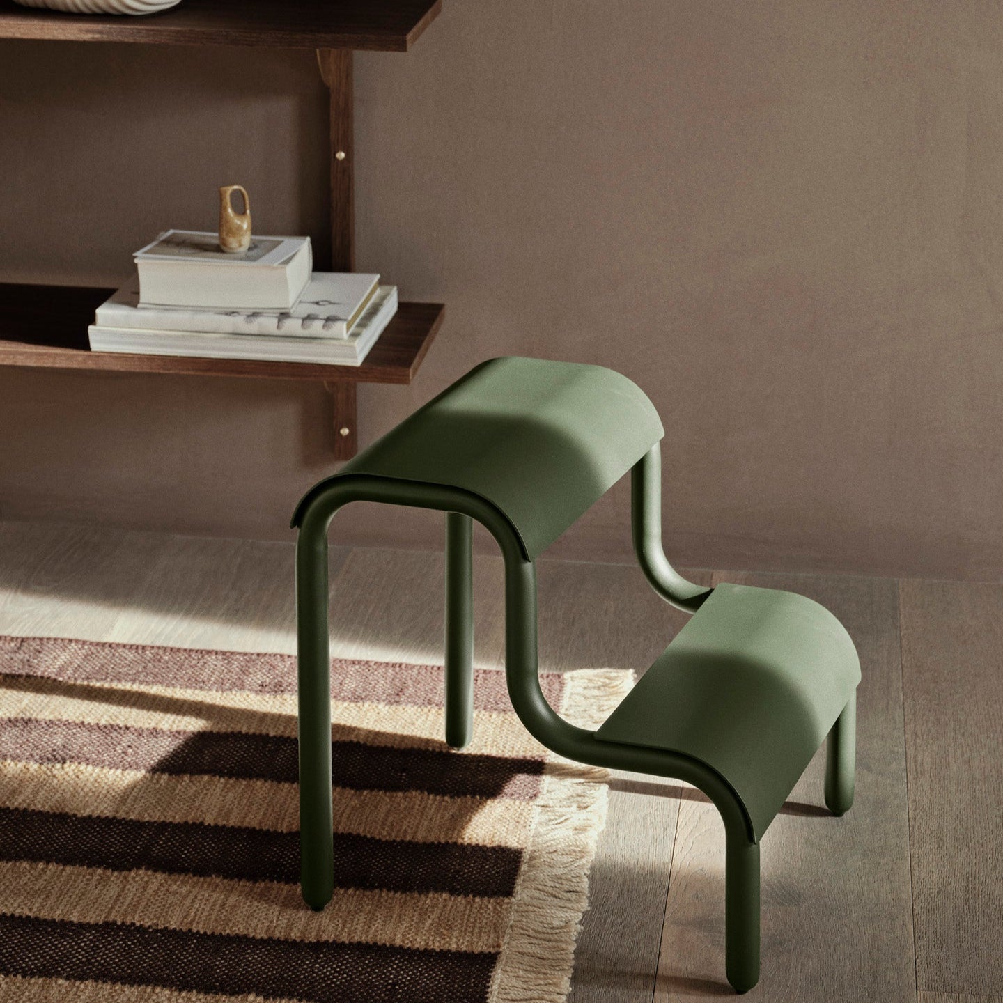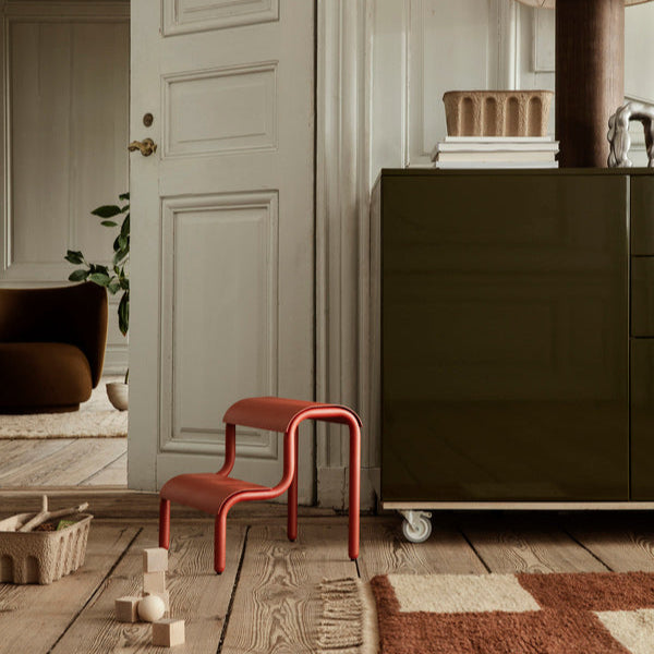With its playful expression and organic silhouette, the Ferm Living Up Step Stool is a decorative yet functional addition to any room. Crafted from powder coated iron, the stool features two tubes that artfully curve into legs, accommodating dual steps that have been treated with a rough surface coating to help prevent slipping.