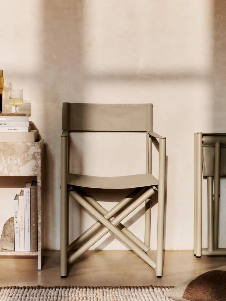 Inspired by the concept of 'voyage,' the Ferm Living Voya Folding Chair embodies a design that's both portable and versatile. Its sophisticated engineering makes it an ideal choice for patios, balconies, living areas, or outdoor escapades. The chair features a lightweight yet robust aluminum frame, built to withstand the elements, while the premium fabric on the seat, backrest, and armrests ensures comfort and an elevated aesthetic.