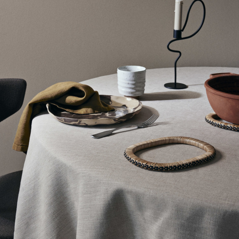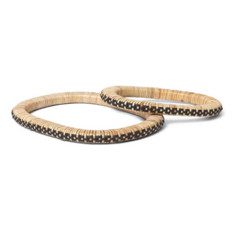 Elevate your table setting with the Weave Series, a delightful infusion of boho and vintage aesthetics. Crafted from braided rattan with interwoven black detailing, the Weave Trivets will protect your surfaces from hot pots and pans while also adding texture and tactility.