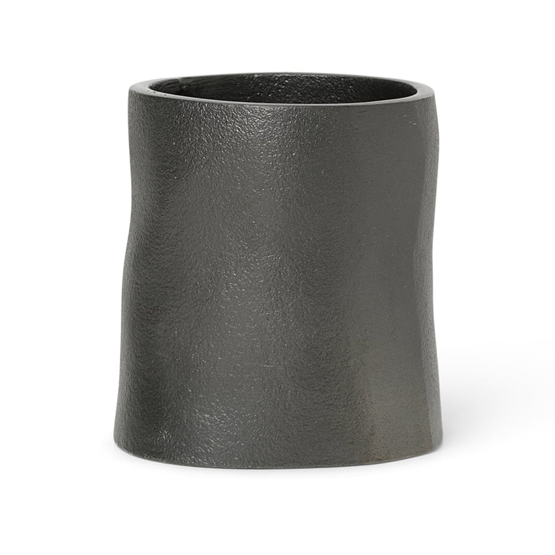 Made from recycled casted aluminum. The Yama Cup is the perfect desk accessory features a rough, matte and blackened finish that contrasts its fluid and organic silhouette.