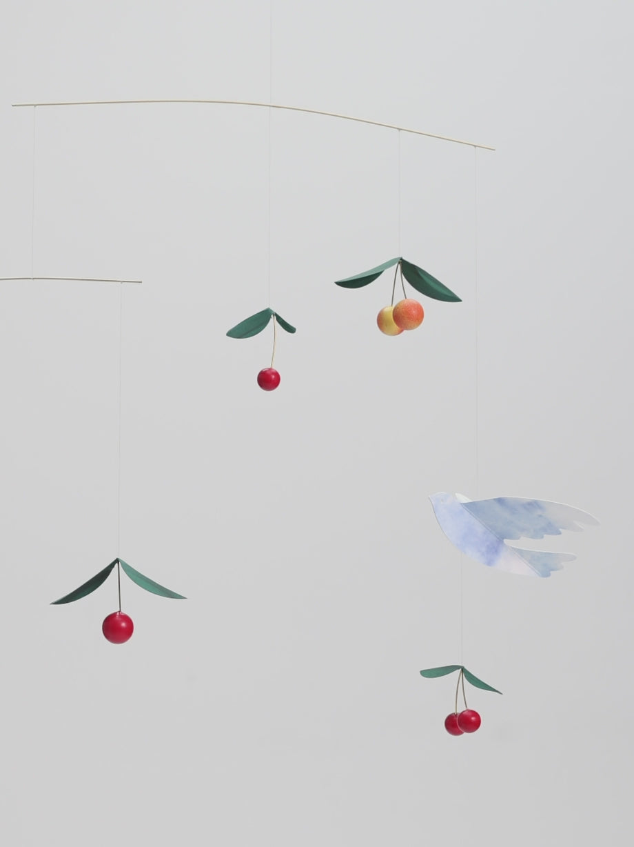The Flensted Cherry Bird Mobile, designed by Carina Caia in 2022, brings the warmth and playfulness of summer into your home. Crafted from premium materials in natural, cheerful colors, it makes a lasting gift and a charming accent for any room—from living spaces and bedrooms to kitchens and children’s rooms.
