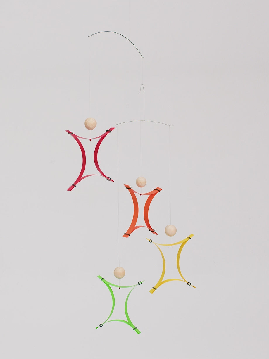 Care Instructions: Cardboard mobiles can be very lightly dusted with a soft brush. Wood, aluminum, or plastic mobiles can be wiped with a moist cloth with a few drops of mild dishwashing detergent.