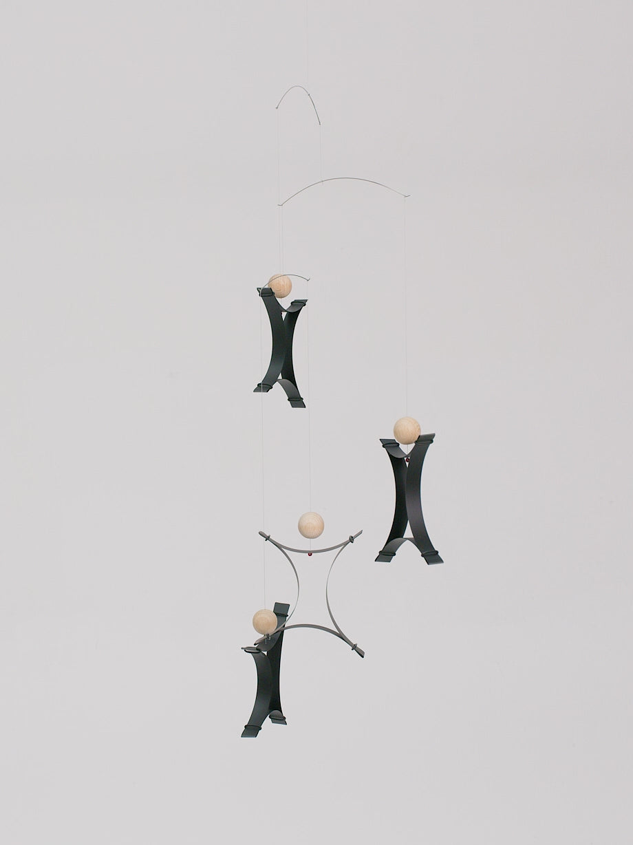 The Flensted Free Mind Mobile, designed by Ole Flensted in 2012, features four floating figures that inspire focus and intention. Hang it near your bed to greet each day with a reminder that life is what you make of it. Available in Rainbow or Black.