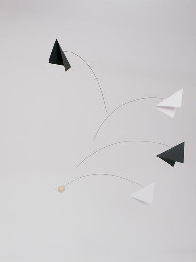 For over 60 years, Flensted has employed "homeworkers" to assemble their mobiles. Each mobile is created in people's homes, with regular visits from Flensted to provide supplies and new mobiles in exchange for the completed ones. Almost all Flensted mobiles are lighter than a standard letter. They can be fixed to your ceiling with a tiny nail––no drills or hooks are needed.