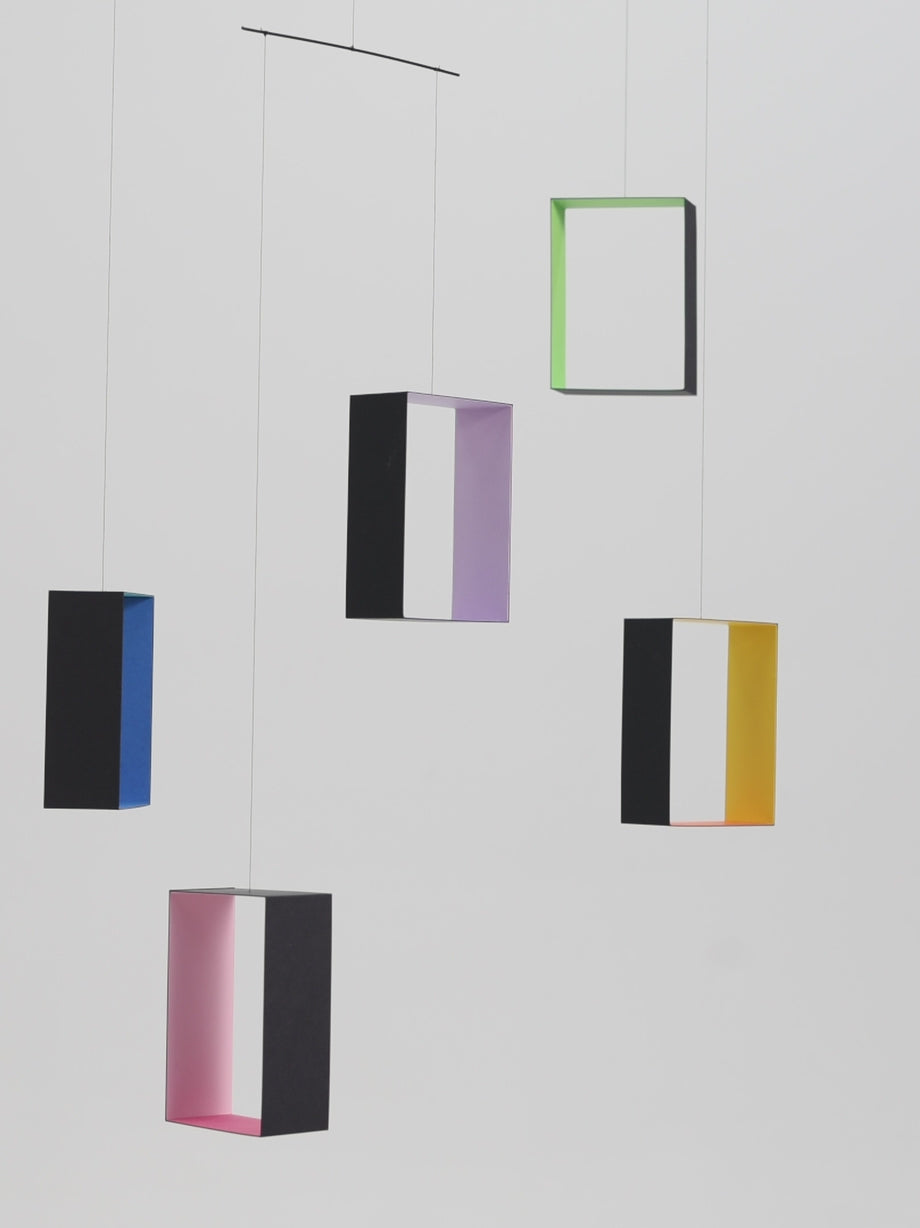 The Flensted Perspectives Mobile, designed by Ole Flensted in 2015, brings ever-changing views to your space. Its colorful frames shift with every turn, offering playful perspectives and framing your surroundings in a fresh way. Ideal for living rooms, bedrooms, kitchens, or offices.
