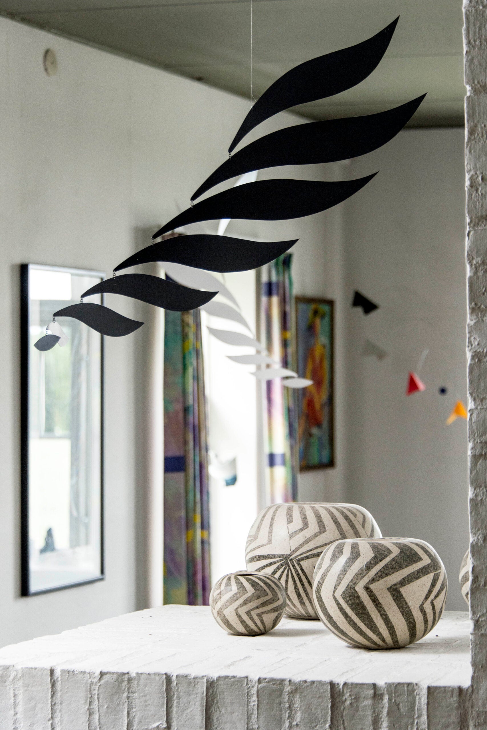 For over 60 years, Flensted has employed "homeworkers" to assemble their mobiles. Each mobile is created in people's homes, with regular visits from Flensted to provide supplies and new mobiles in exchange for the completed ones. Almost all Flensted mobiles are lighter than a standard letter. They can be fixed to your ceiling with a tiny nail––no drills or hooks are needed.