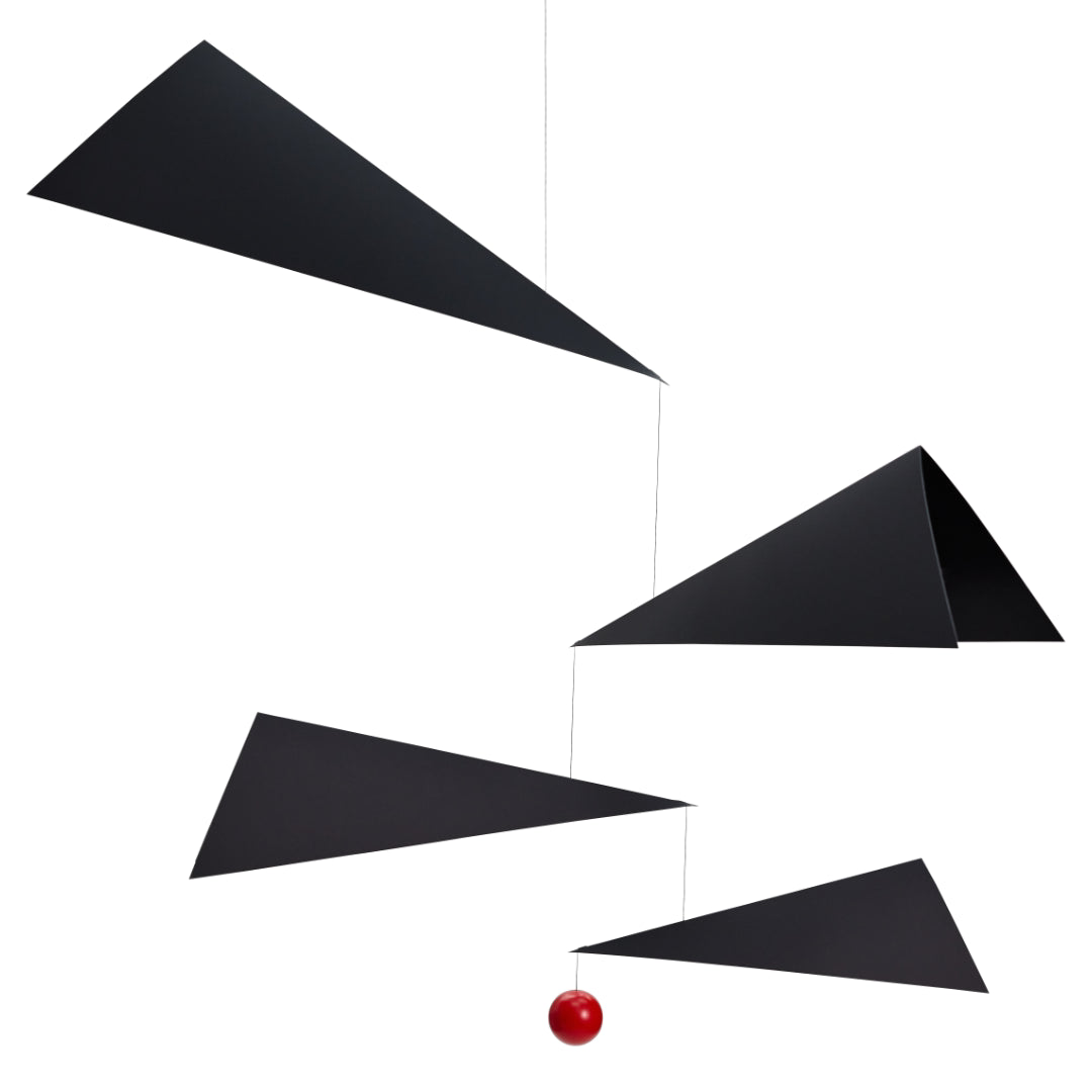 Designed by Louise B. Helmersen in 2004, the Flensted Wings Mobile features folded origami reminiscent of the wings of stealth aircraft. We love the consideration of negative space in this piece. Made by hand in Denmark with high-quality plastic.