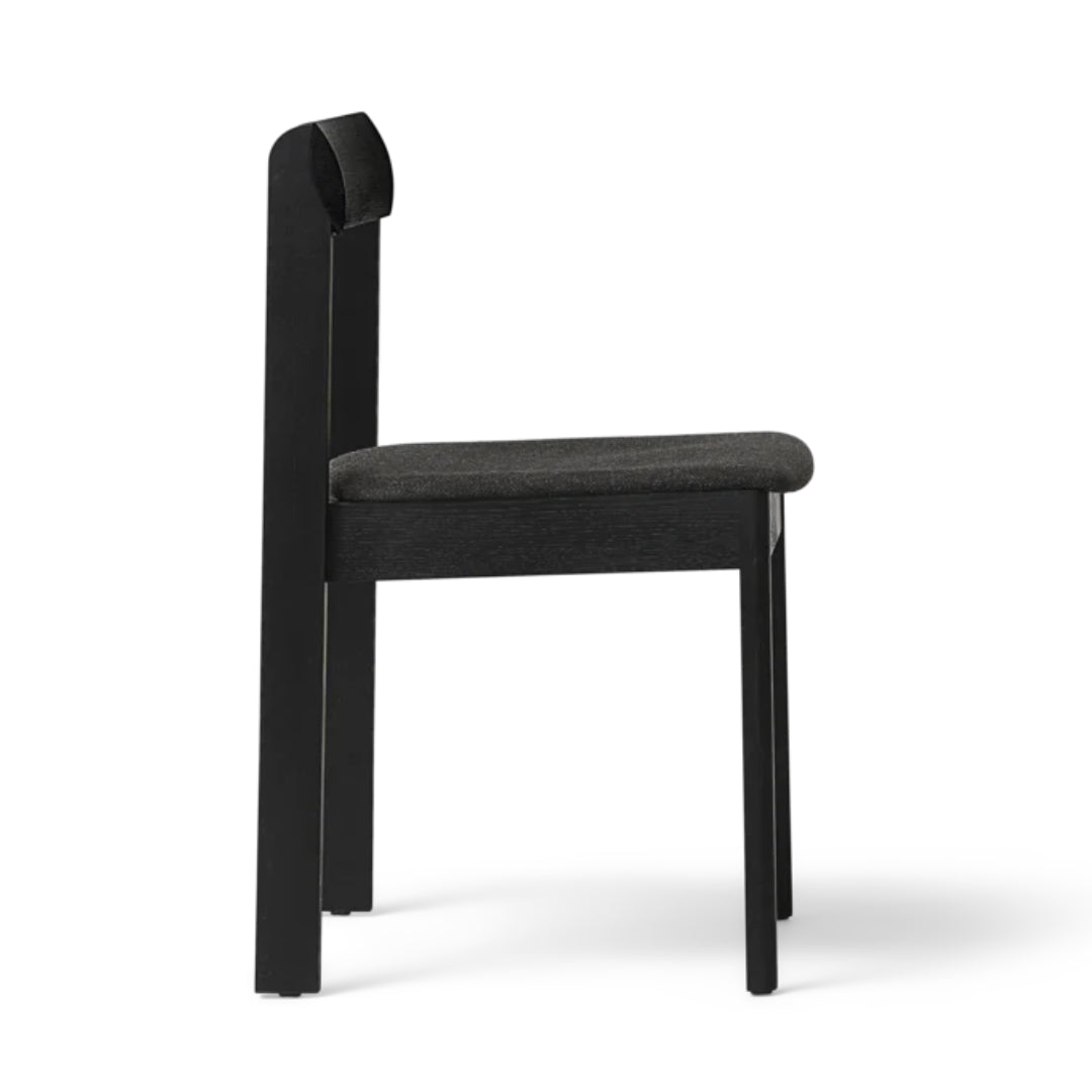 Form & Refine's iconic Blueprint Chair in Black Hallingdal 65 boasts an anatomically-inspired seat for optimal posture and comfort. Its solid, organically shaped backrest exudes minimalist elegance. Supported by sturdy legs, its Hallingdal upholstery adds a light yet striking visual appeal.