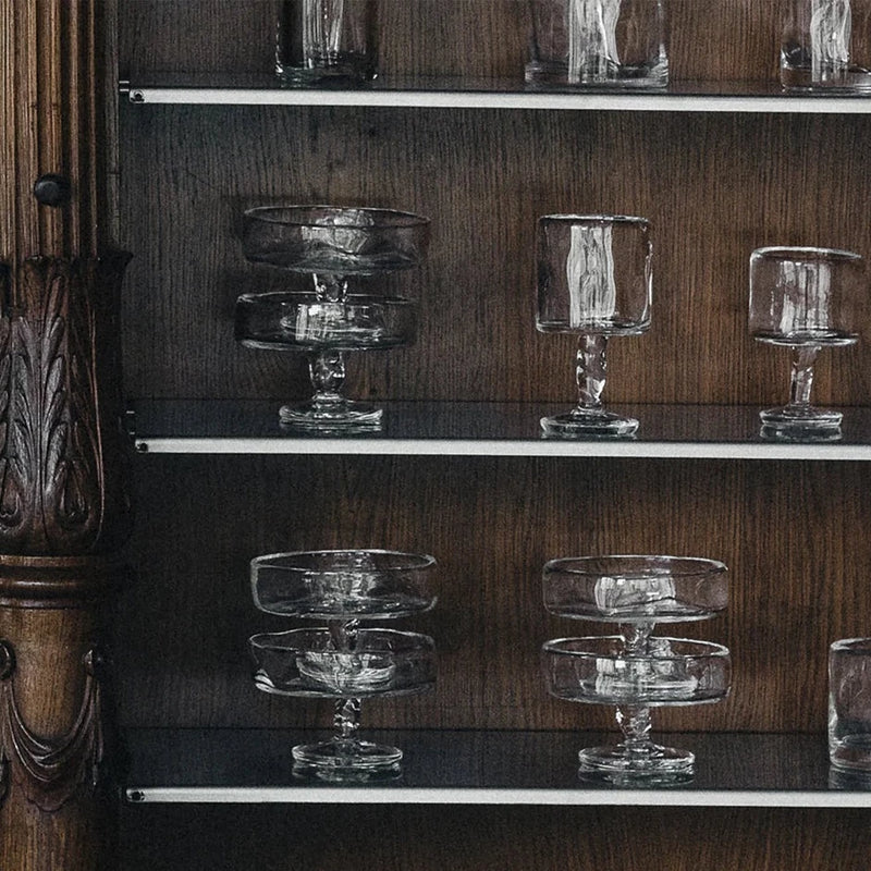 The FRAMA 0405 Stem Glass in Wide is part of the 0405 Glassware collection, masterfully handcrafted with durable clear glass. Each piece in the set is inherently unique, ensuring that you own a one-of-a-kind creation. The distinctive characteristics of the handcrafted glass adds a touch of individuality to your collection.