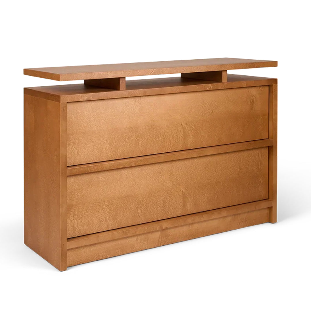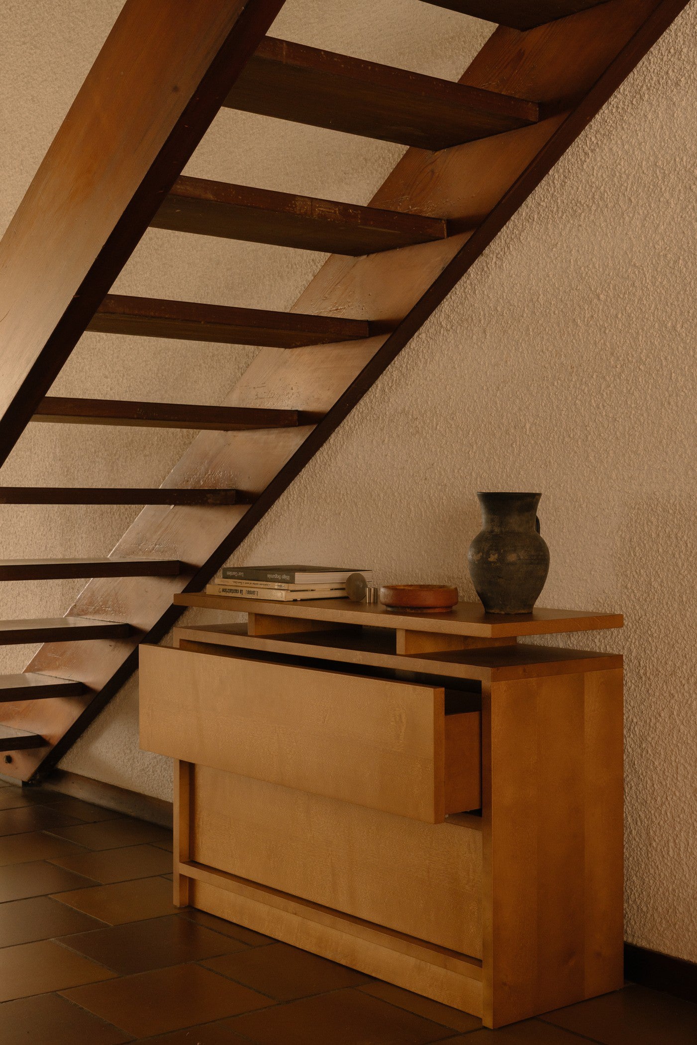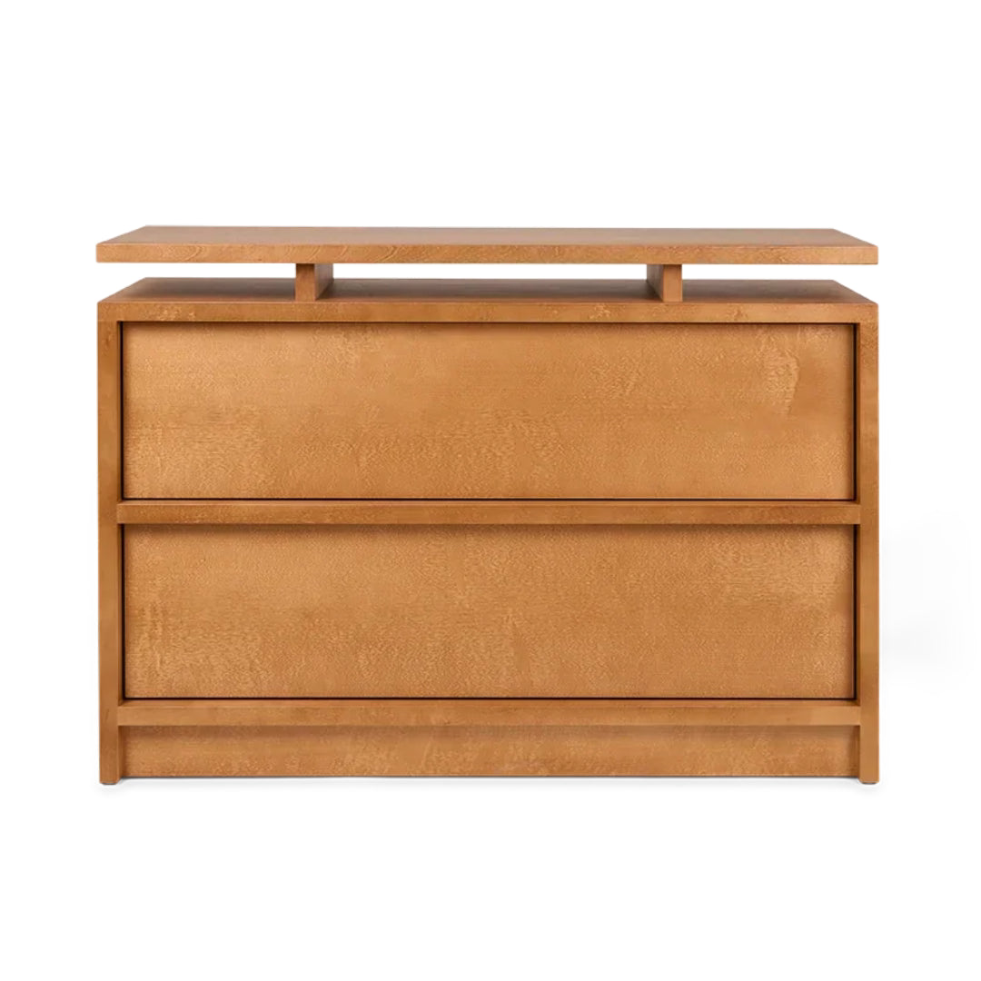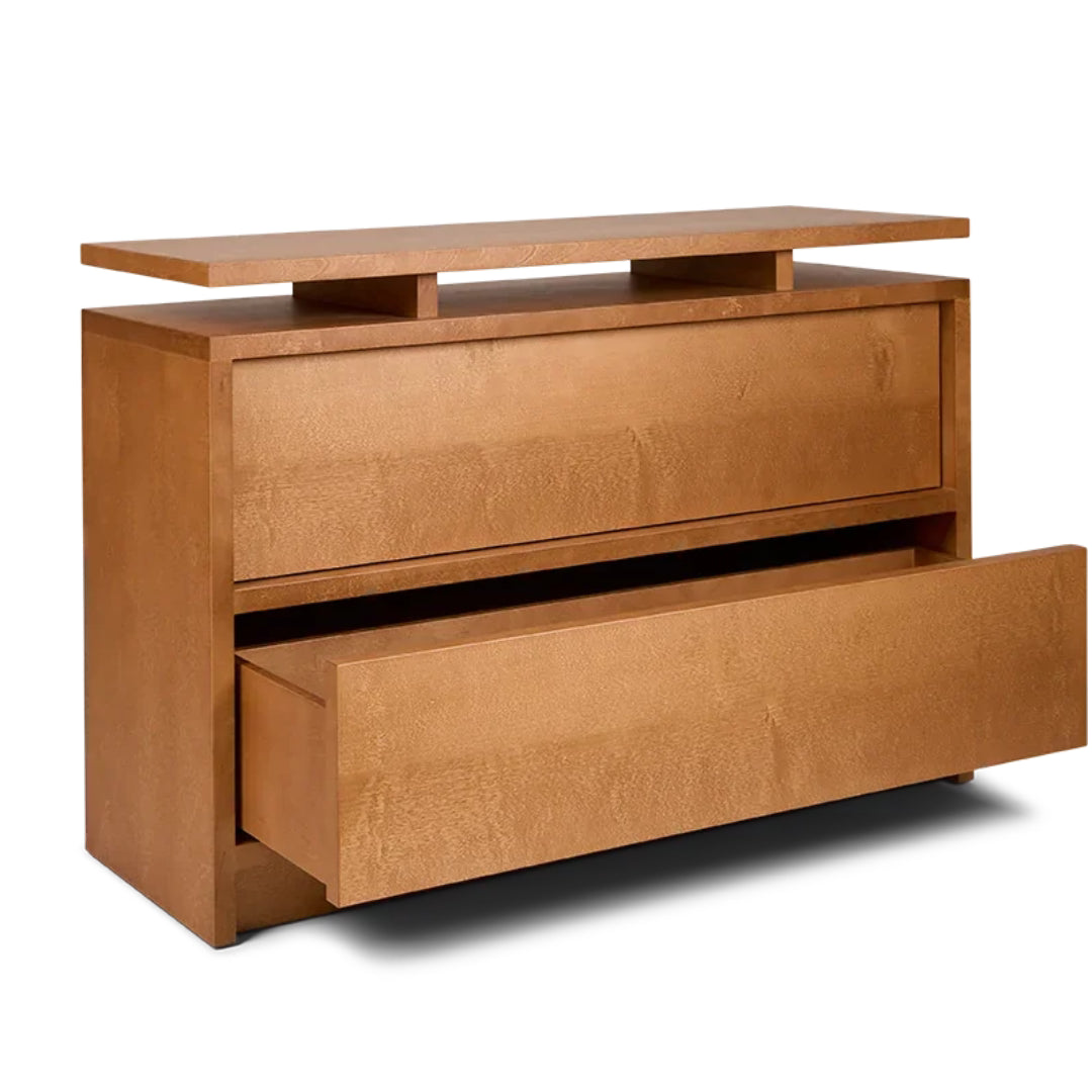 The Frama Ratio Chest is designed with generous, horizontal drawers that provide ample closed storage while showcasing the natural beauty of Birchwood across its wide front. A concealed top compartment offers additional storage, and the two drawers feature a push-to-open mechanism with soft, silent-close rails.