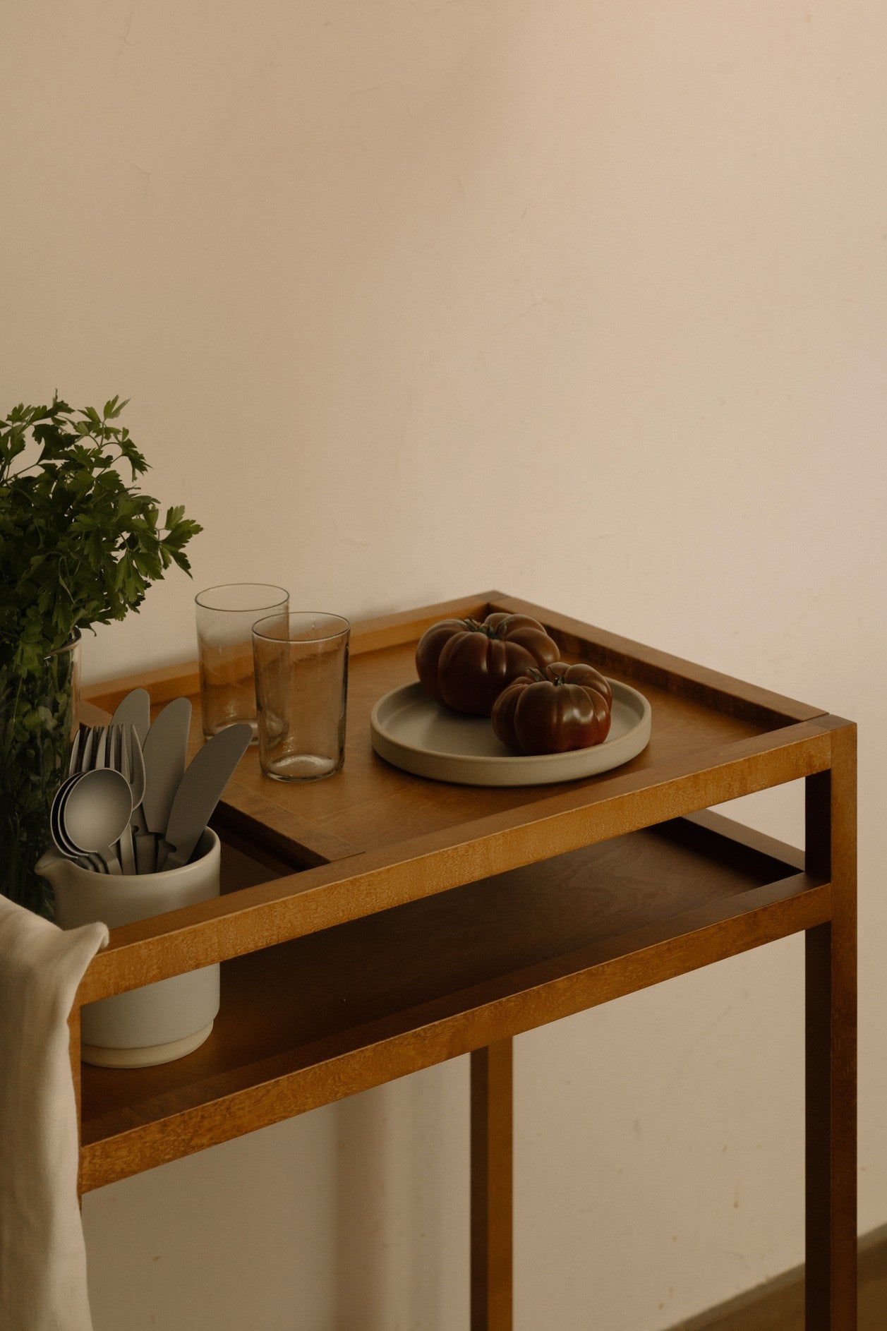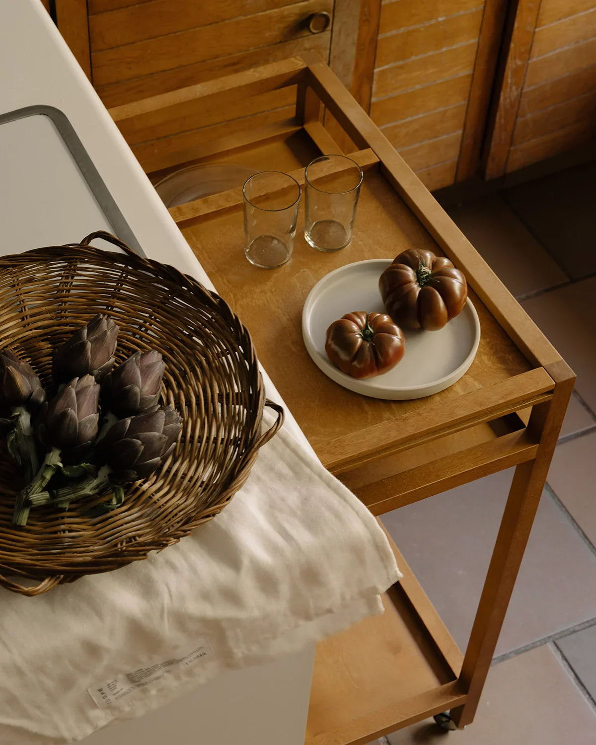 A modern take on the classic bar cart, the Frama Ratio Trolley pairs a recognizable silhouette with a fresh material choice, highlighting texture and tactility. Thoughtfully designed with a removable tray and smooth-rolling castors, it moves with ease and serves with style.
