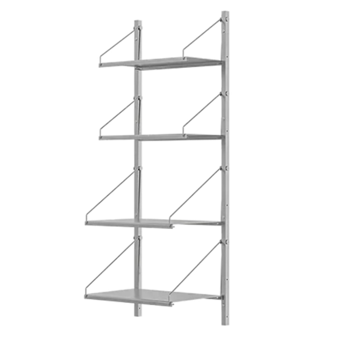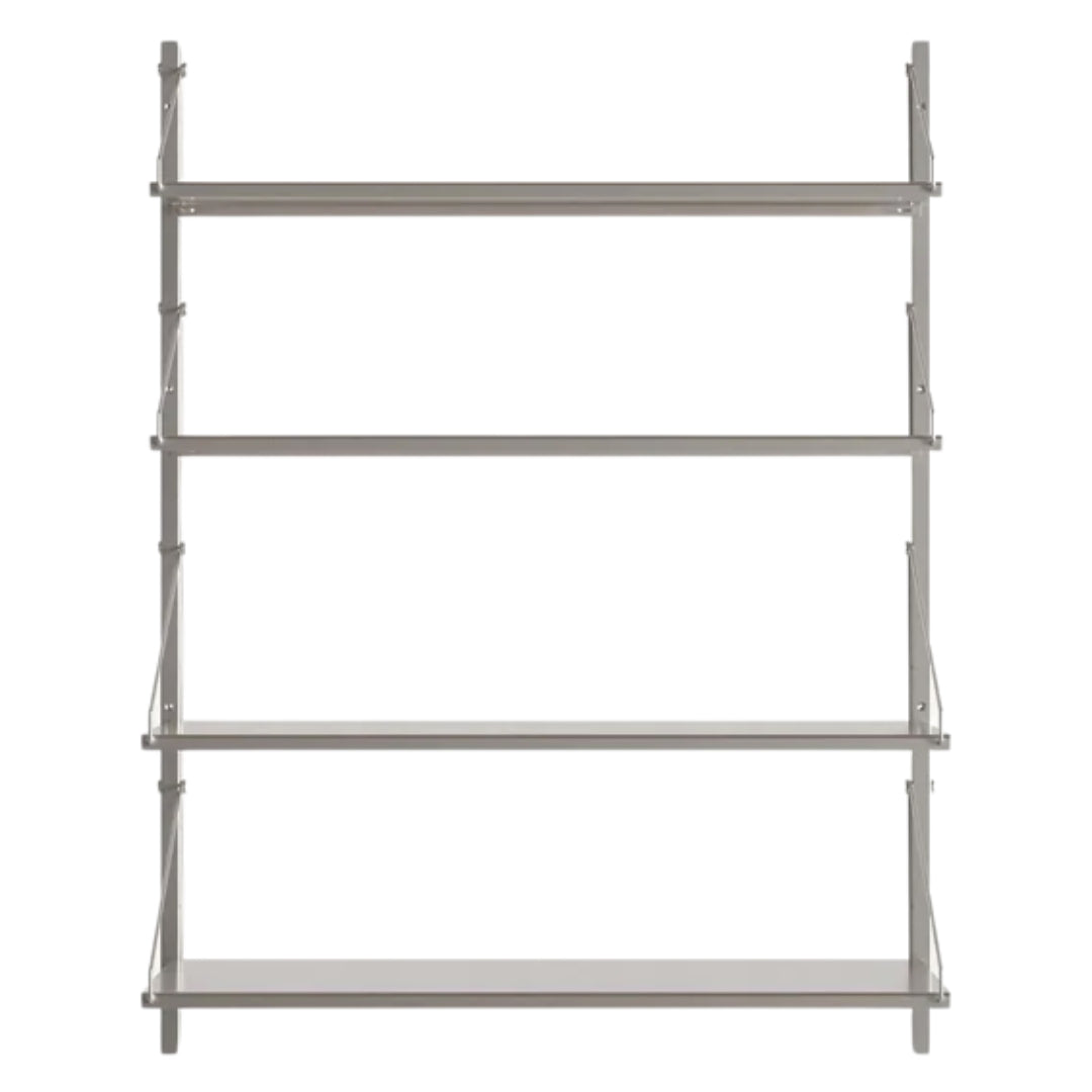 The FRAMA Shelf Library Single Section H42.7 in Stainless Steel is a modern interpretation of the classic rail-mounted shelving systems first introduced by Scandinavian cabinetmakers in the 1930s and later embraced by mid-century designers. Designed by Kim Richardt for FRAMA in 2016, this version brings a refined, contemporary perspective to a timeless concept.