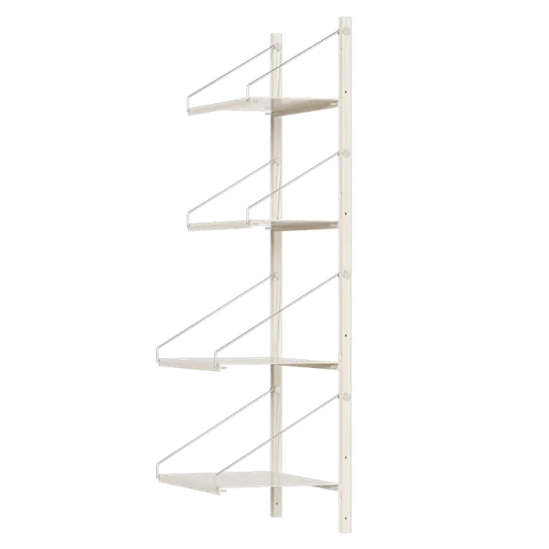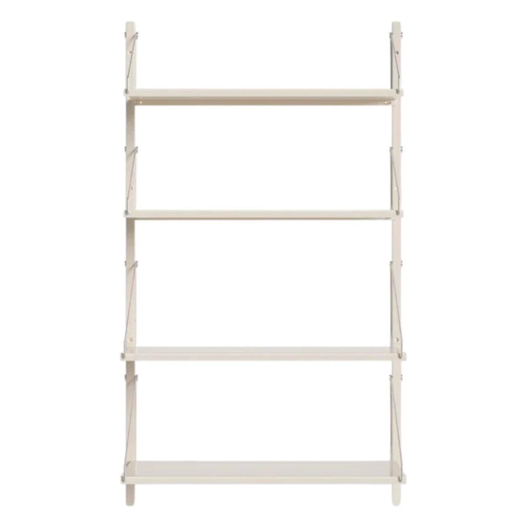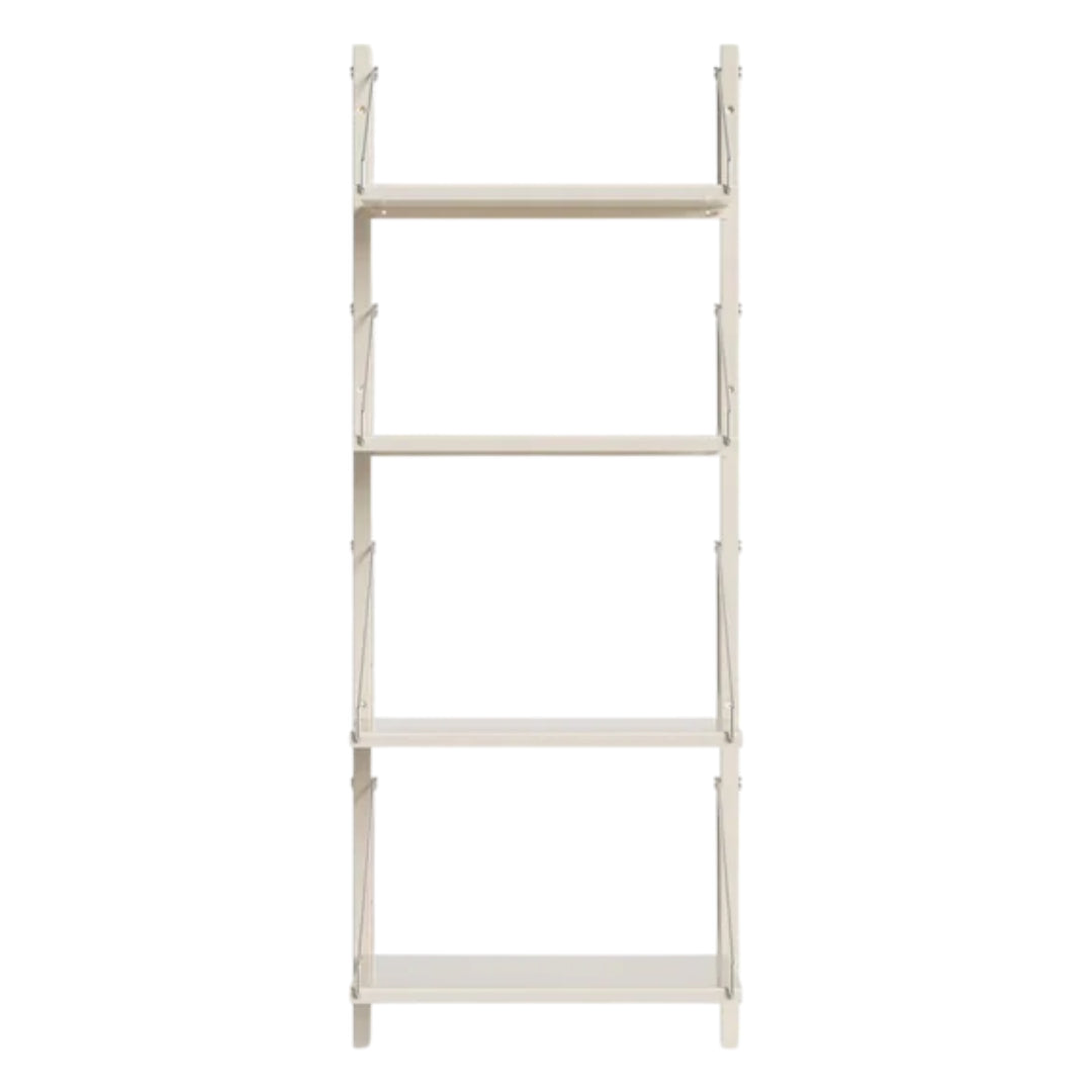 The FRAMA Shelf Library Single Section H42.7 in Warm White Steel is a modern interpretation of the classic rail-mounted shelving systems first introduced by Scandinavian cabinetmakers in the 1930s and later embraced by mid-century designers. Designed by Kim Richardt for FRAMA in 2016, this version brings a refined, contemporary perspective to a timeless concept.