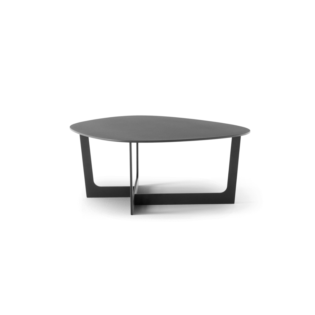Insula is a series of distinctive coffee tables made in pure aluminum and designed by Danish designers Mette Bartholin-Jensen and Morten Ernst. The asymmetrical yet balanced shape of the tabletop is balanced by the streamlined definition seen in the slim table top and angular frame. Almost like small islands, the tables have a floating feeling. Their striking silhouette makes them equally beautiful as a stand-alone piece or clustered together to form an archipelago.