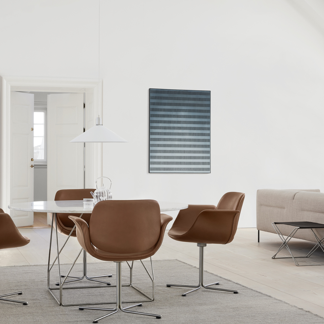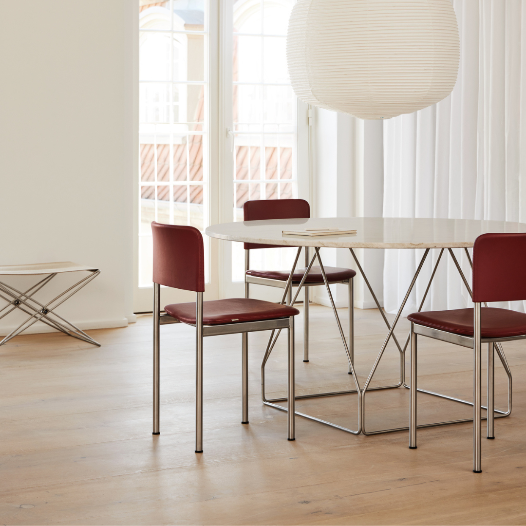 The JG Table expresses designer Jørgen Gammelgaard’s desire to create a simple, elegant design with a supportive structure that would not limit the seating around the table. Providing remarkable stability, as well as an intriguing graphic aesthetic, the JG Table works beautifully wherever you place it.