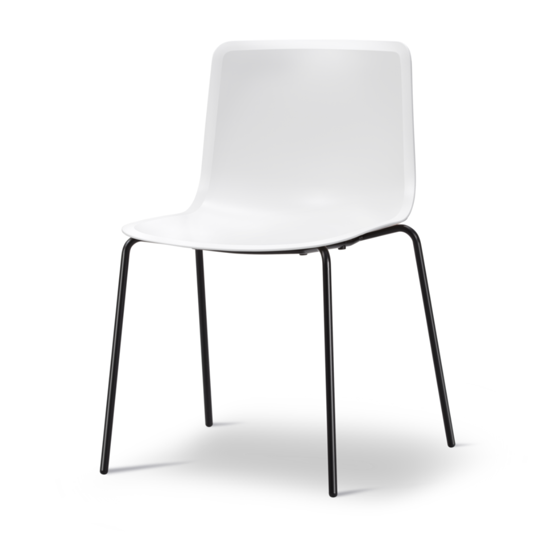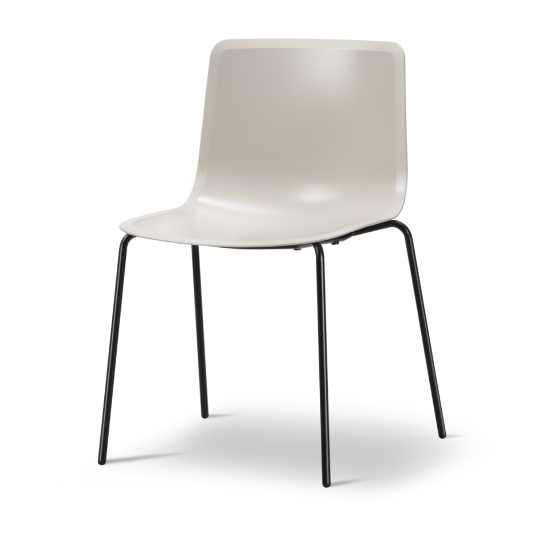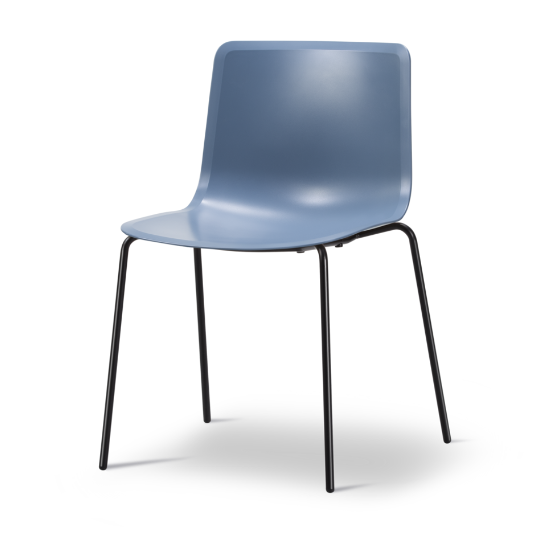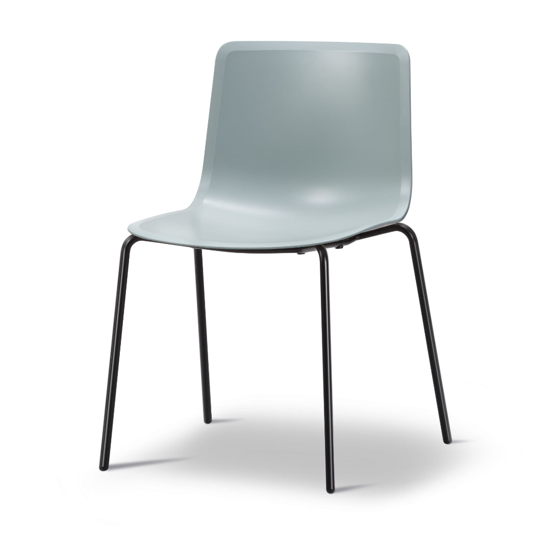 The versatile PATO Chair series is based around a shell made with 100% recycled polypropylene. This 4-leg version is stackable. Welling/Ludvik designed the PATO Chair in a way to keep material flows as clean and recyclable as possible so that the components can be recycled in the future as needed.