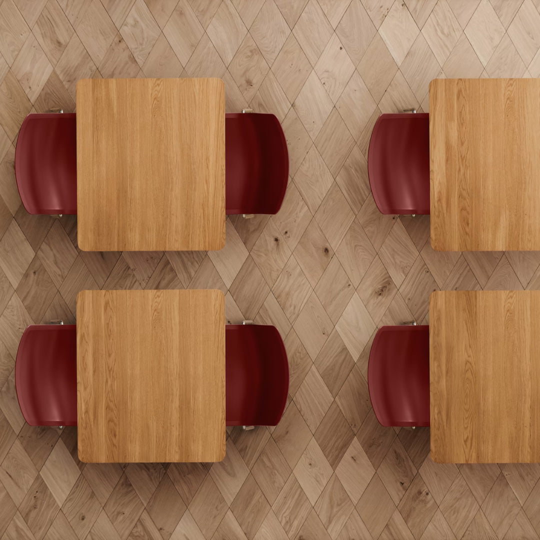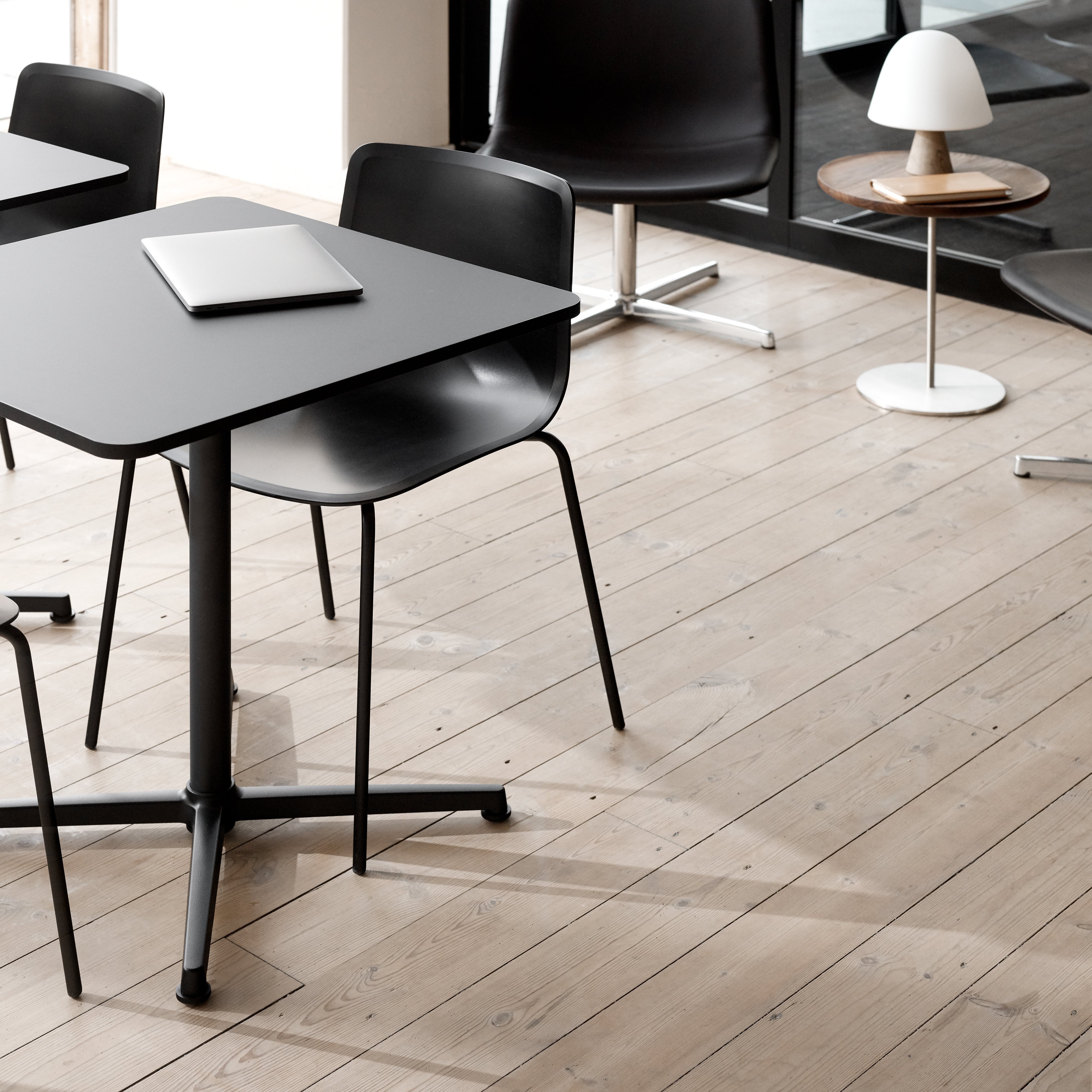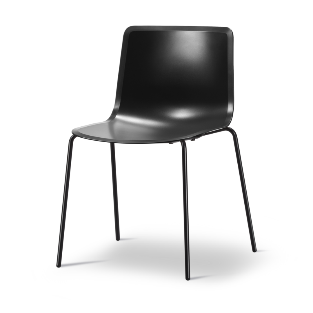 The versatile PATO Chair series is based around a shell made with 100% recycled polypropylene. This 4-leg version is stackable. Welling/Ludvik designed the PATO Chair in a way to keep material flows as clean and recyclable as possible so that the components can be recycled in the future as needed.