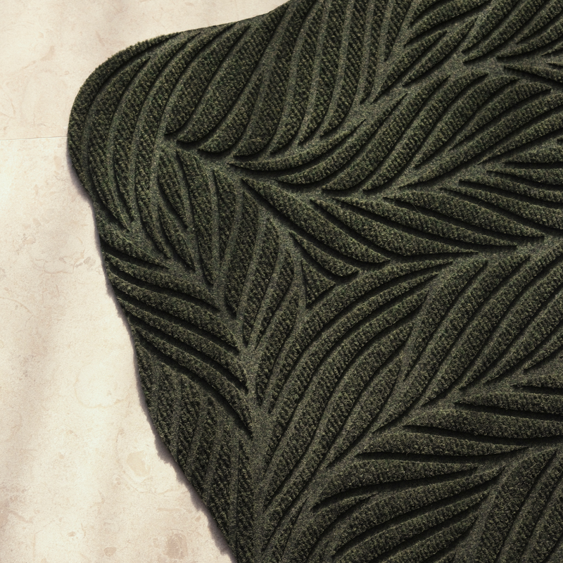 The Twine Floor Mat in Green is a contemporary take on a traditional favorite with a uniquely shaped border that makes the design appear to twist and dance. This new and natural green color is remisicient of the forest floor, with its tangled roots and knots.
