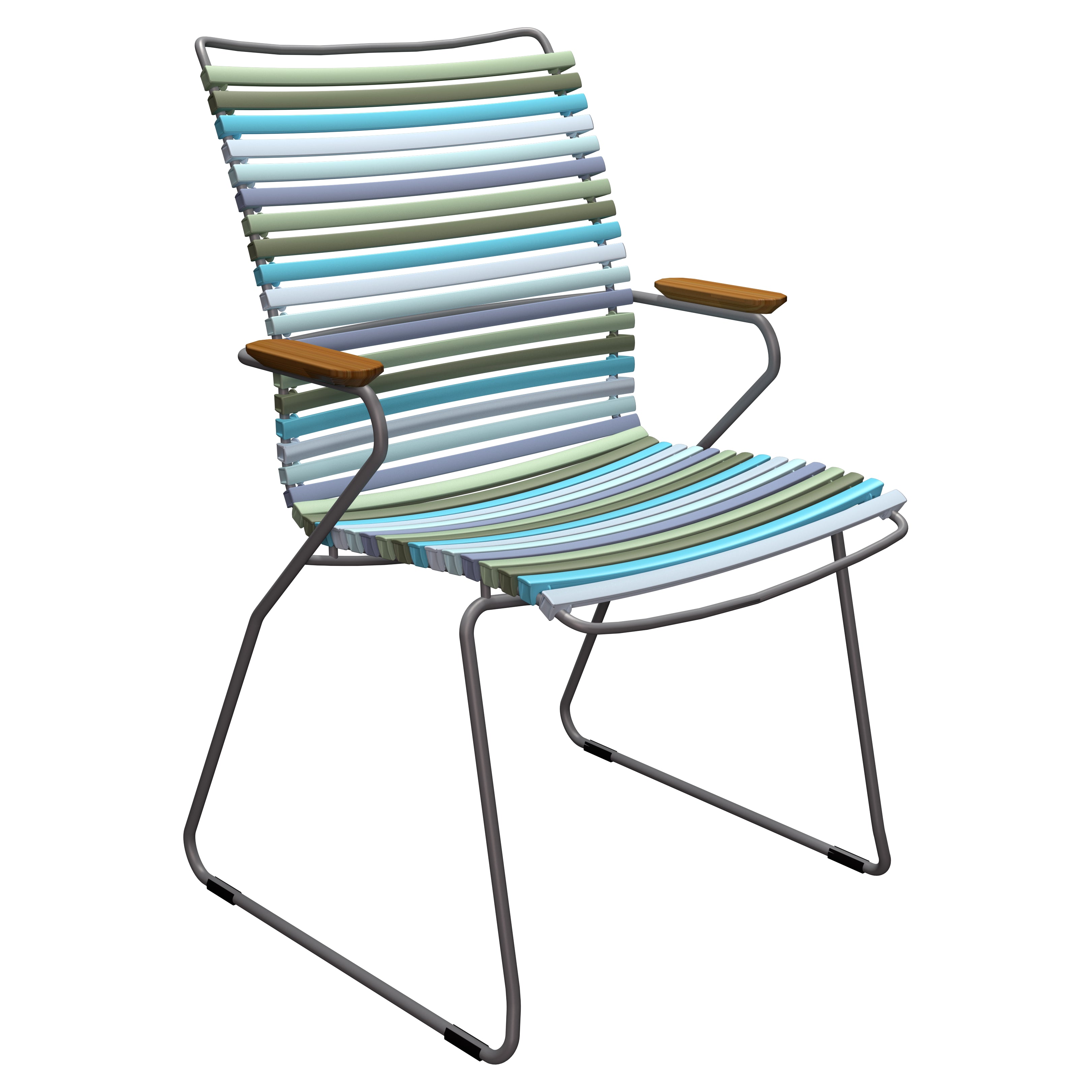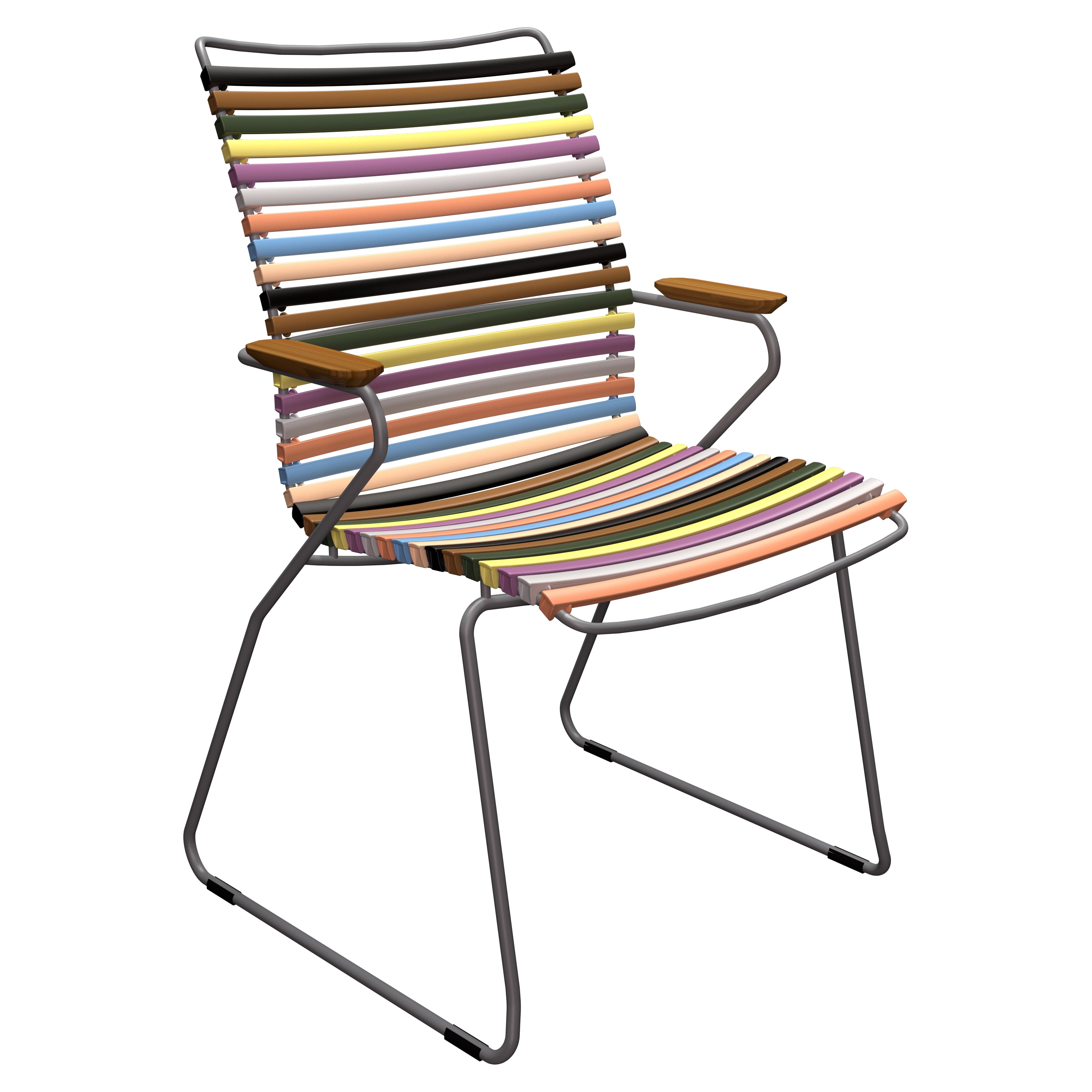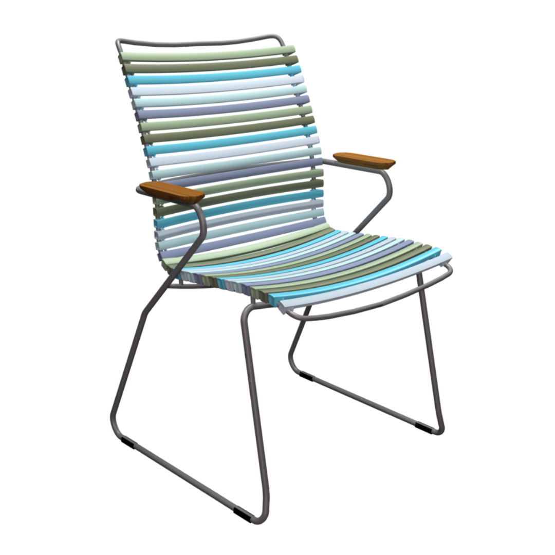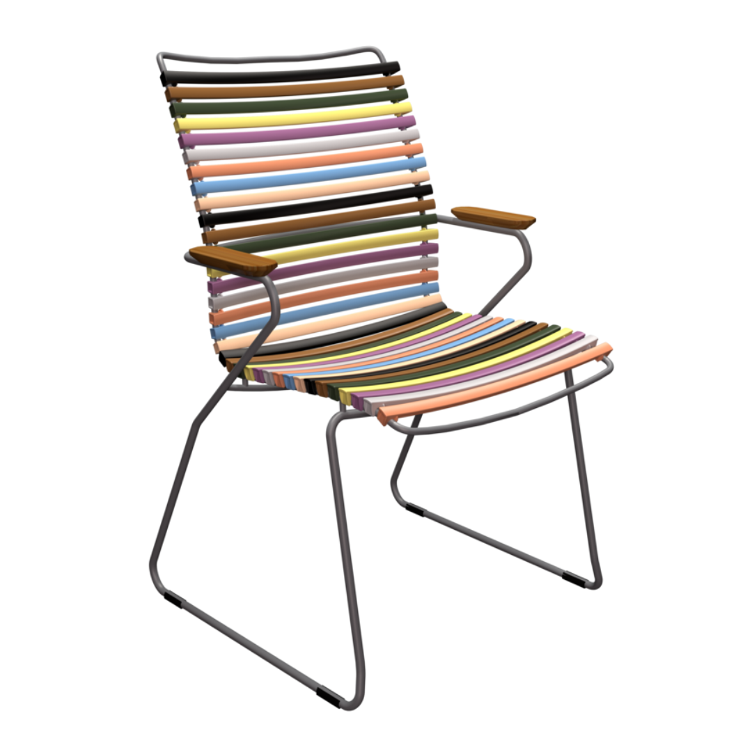 The CLICK Outdoor Dining Chair - Tall Back is a simple, honest, and ergonomically well-thought-out design. The plastic lamellas that make up the seat are composed of exactly the right strength and resilience to provide excellent cushion-free comfort. The lamellas can be CLICKed on and off - which makes it possible to modify the look of the chair simply by changing - or mixing the different lamella colors. The stackable CLICK Dining Chair - Tall Back comes in 11 colors.