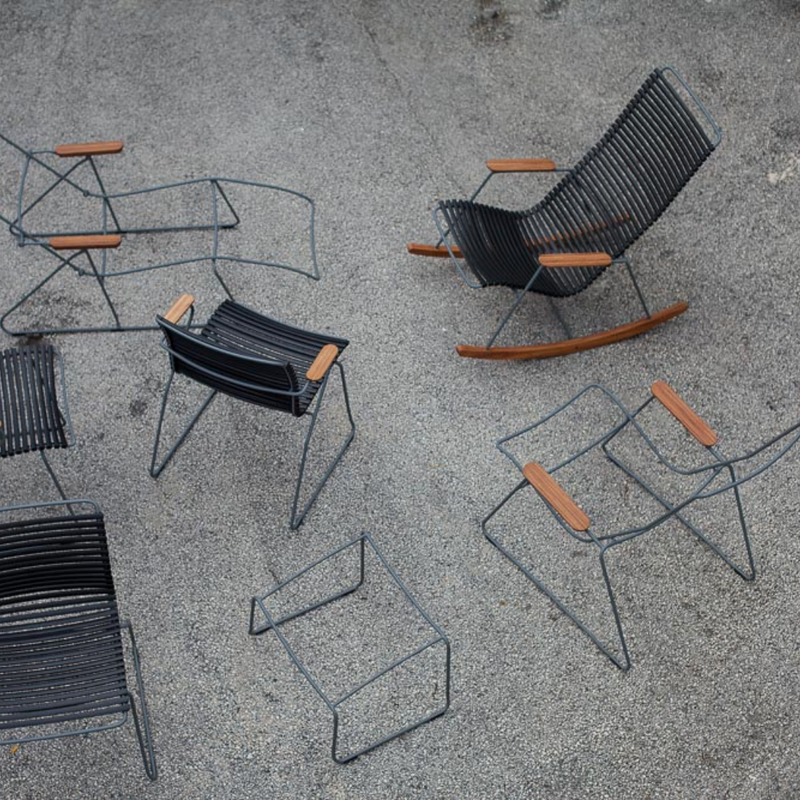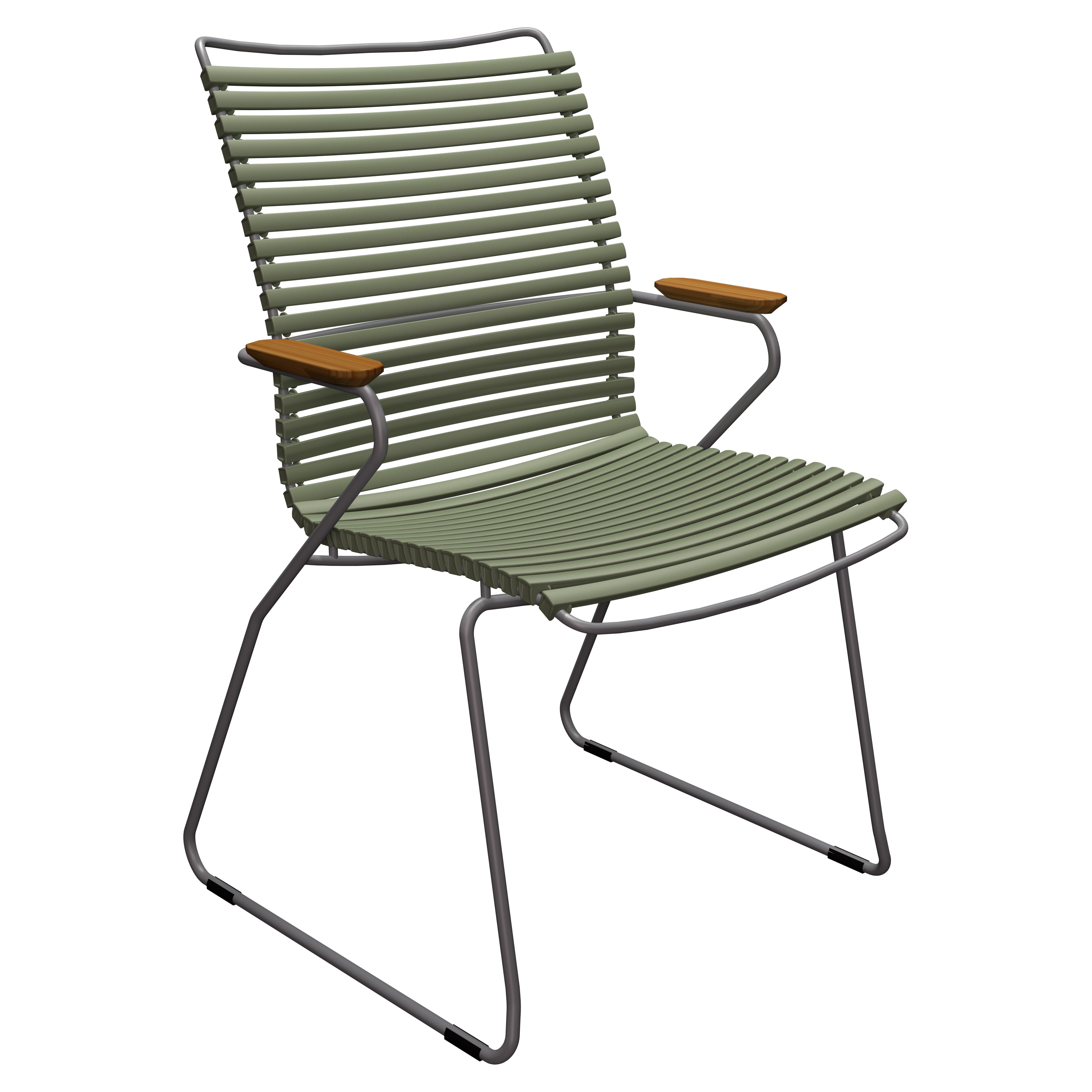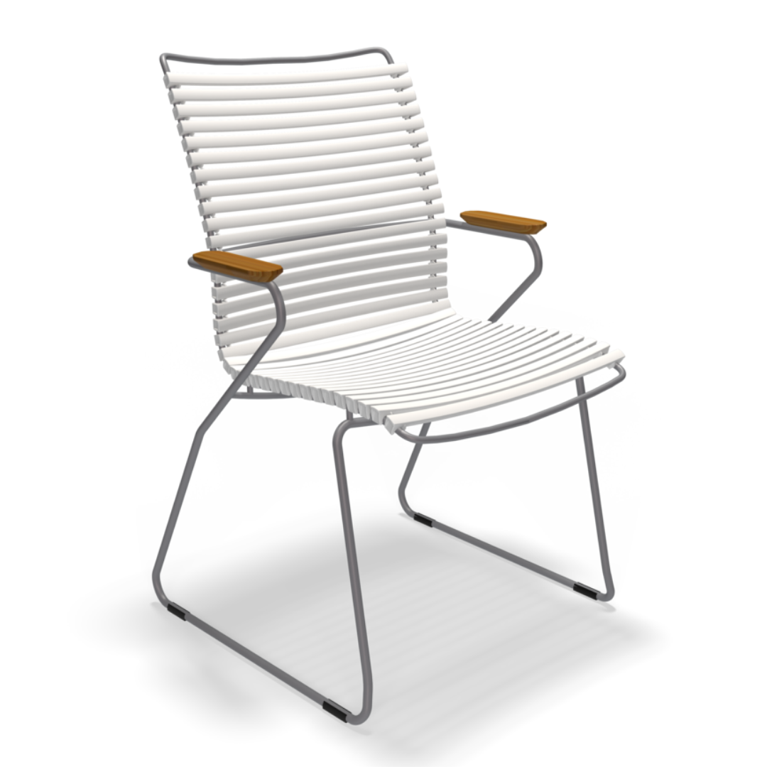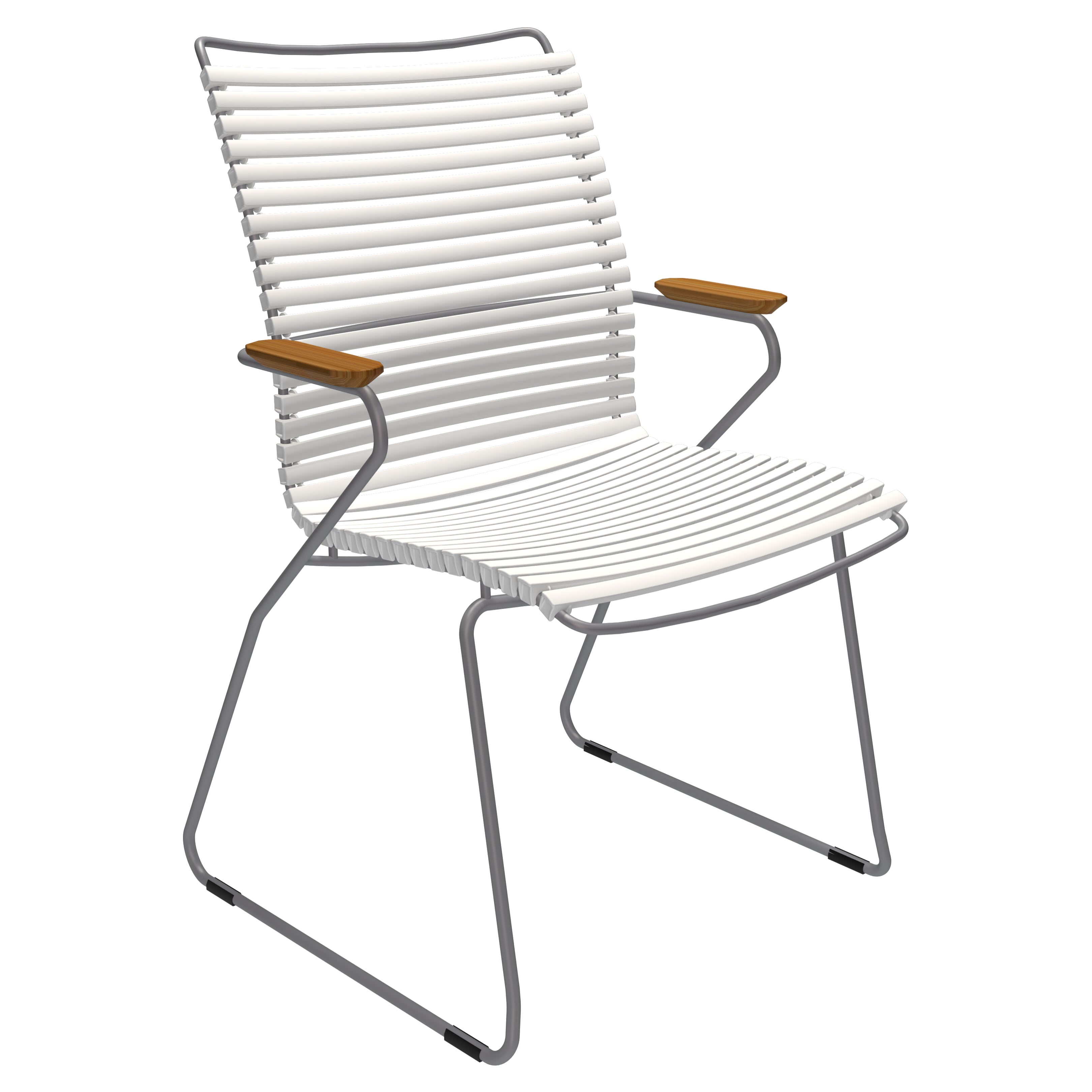 The CLICK Outdoor Dining Chair - Tall Back is a simple, honest, and ergonomically well-thought-out design. The plastic lamellas that make up the seat are composed of exactly the right strength and resilience to provide excellent cushion-free comfort. The lamellas can be CLICKed on and off - which makes it possible to modify the look of the chair simply by changing - or mixing the different lamella colors. The stackable CLICK Dining Chair - Tall Back comes in 11 colors.