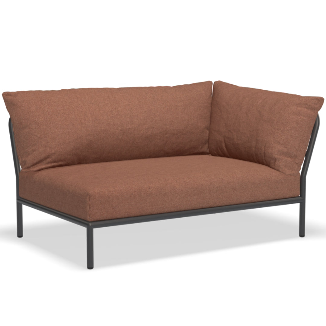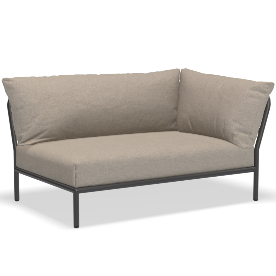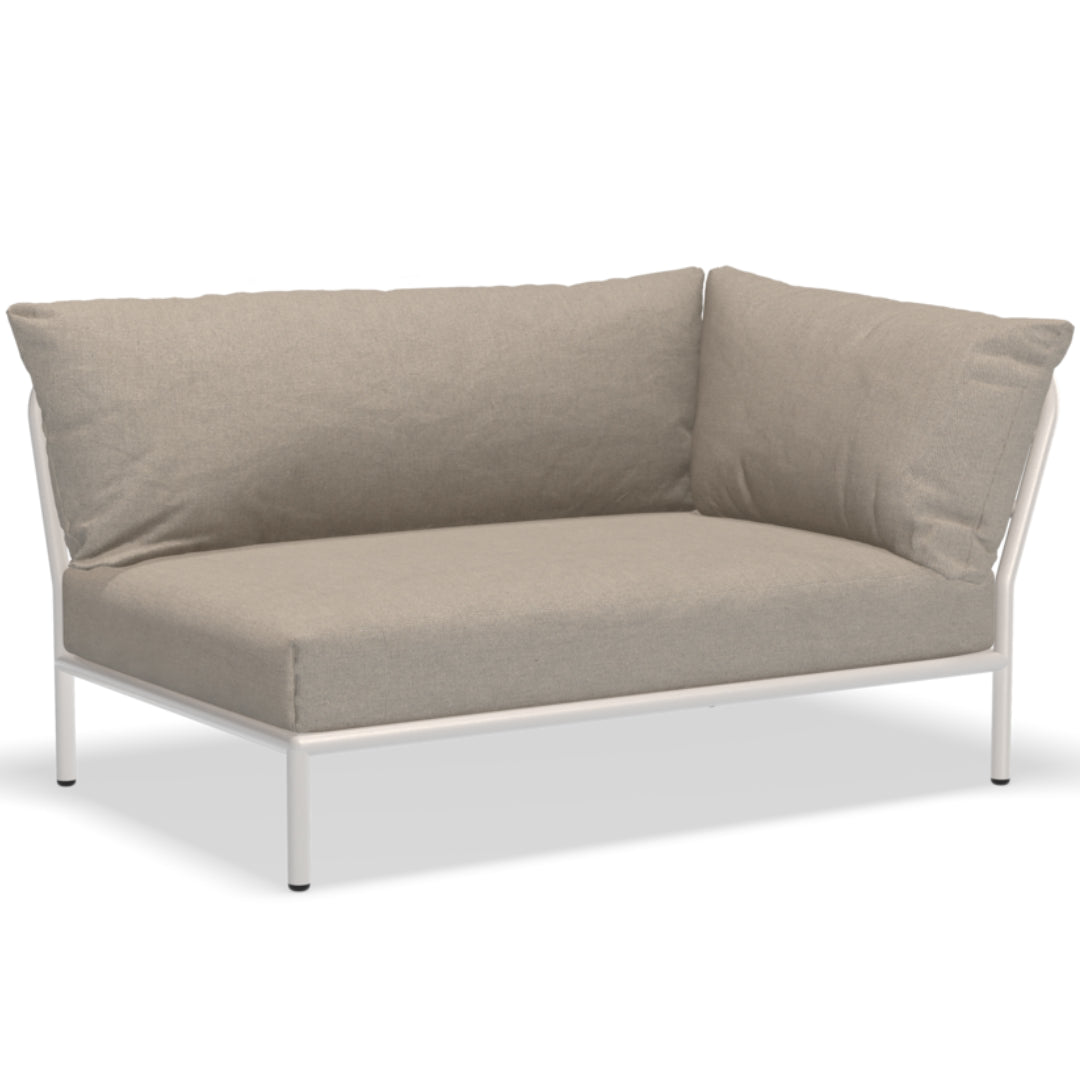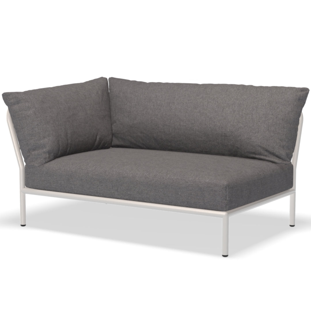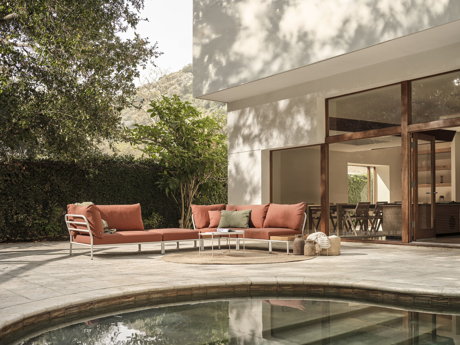 The LEVEL Outdoor Corner is part of a modular outdoor lounge furniture series that offers endless possibilities and configurations. The modules can be combined in many different ways. The lightweight aluminum frame and the soft cushions create both contrast and comfort. All LEVEL cushion fabric is Sunbrella brand, making it water and stain-resistant and easy to maintain.