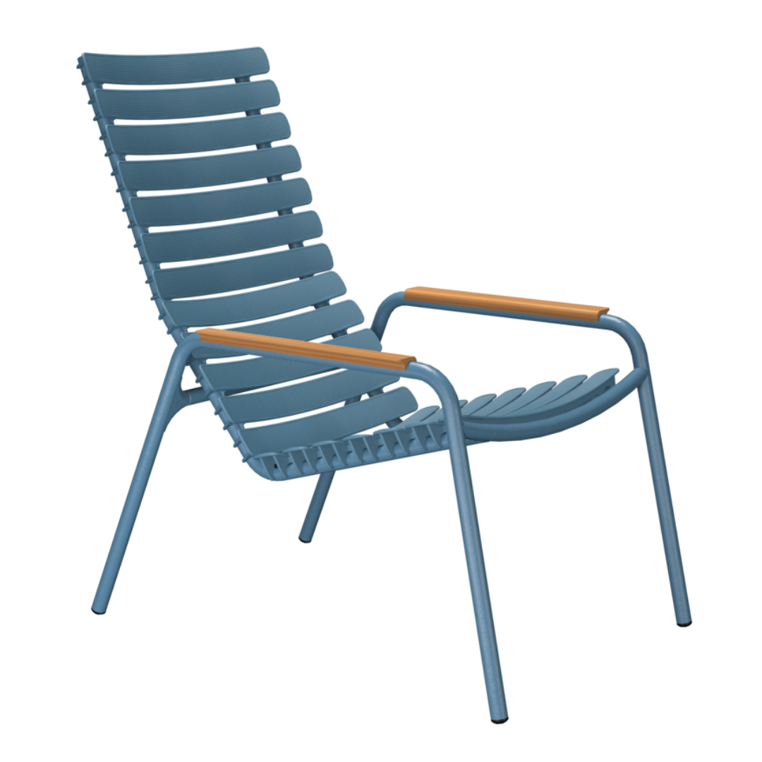 The ReCLIPS Outdoor Lounge Chair with aluminum armrest comes in 2 mono colors. ReCLIPS is part of HOUE MyTrash, a collection of outdoor chairs with wide lamellas made from 97% Danish household plastic trash and produced in Denmark. ReCLIPS is the result of mixing Danish design and Danish innovation. The ReCLIPS Outdoor Lounge Chair can be stacked up to 10 chairs.