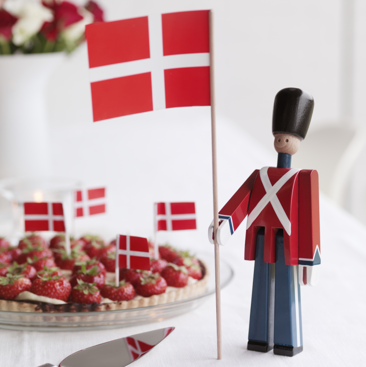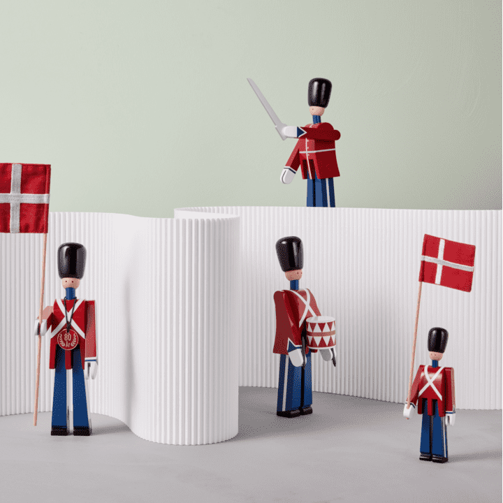 Inspired by one of Denmark's national symbols on the courtyard at Amalienborg Palace, Kay Bojesen created his hand-painted guardsmen in 1942. Ever since, the standard bearer has been a much-loved guest at birthday celebrations and has become a design icon for the home. A great gift idea that will last a lifetime for both children and adults. Available in four sizes: Mini, Small, Medium, and Large