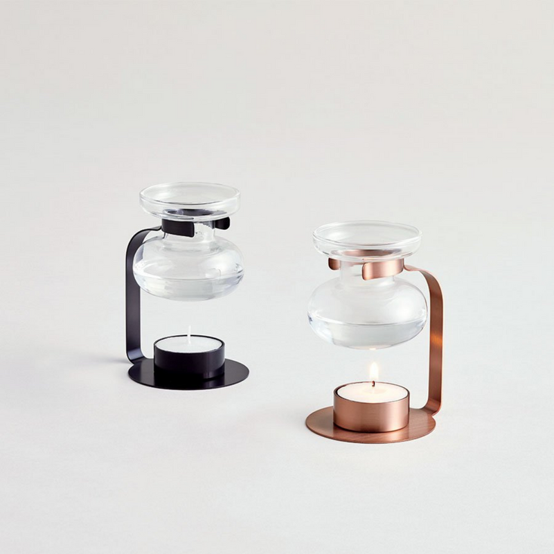 The Aroma Oil Warmer by KINTO is a beautifully designed, minimal oil holder, made from a high quality heat resistant glass and stainless steel. Pair it with your favorite essential oil or fragrance, for a lightly diffused scent in your favorite part of your home.