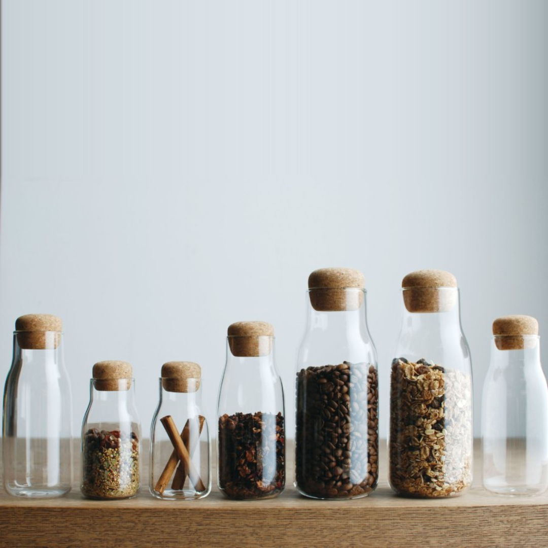 The BOTTLIT Canister is made using heat resistant glass, paired with a cork lid. This item is dishwasher safe