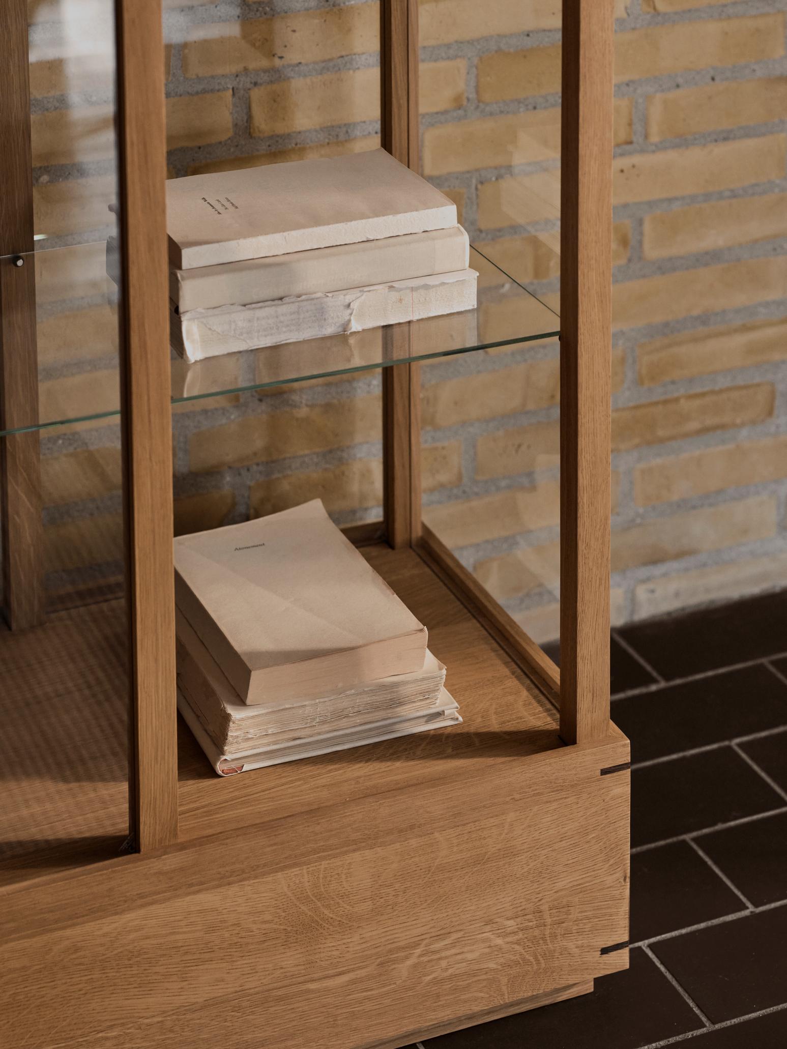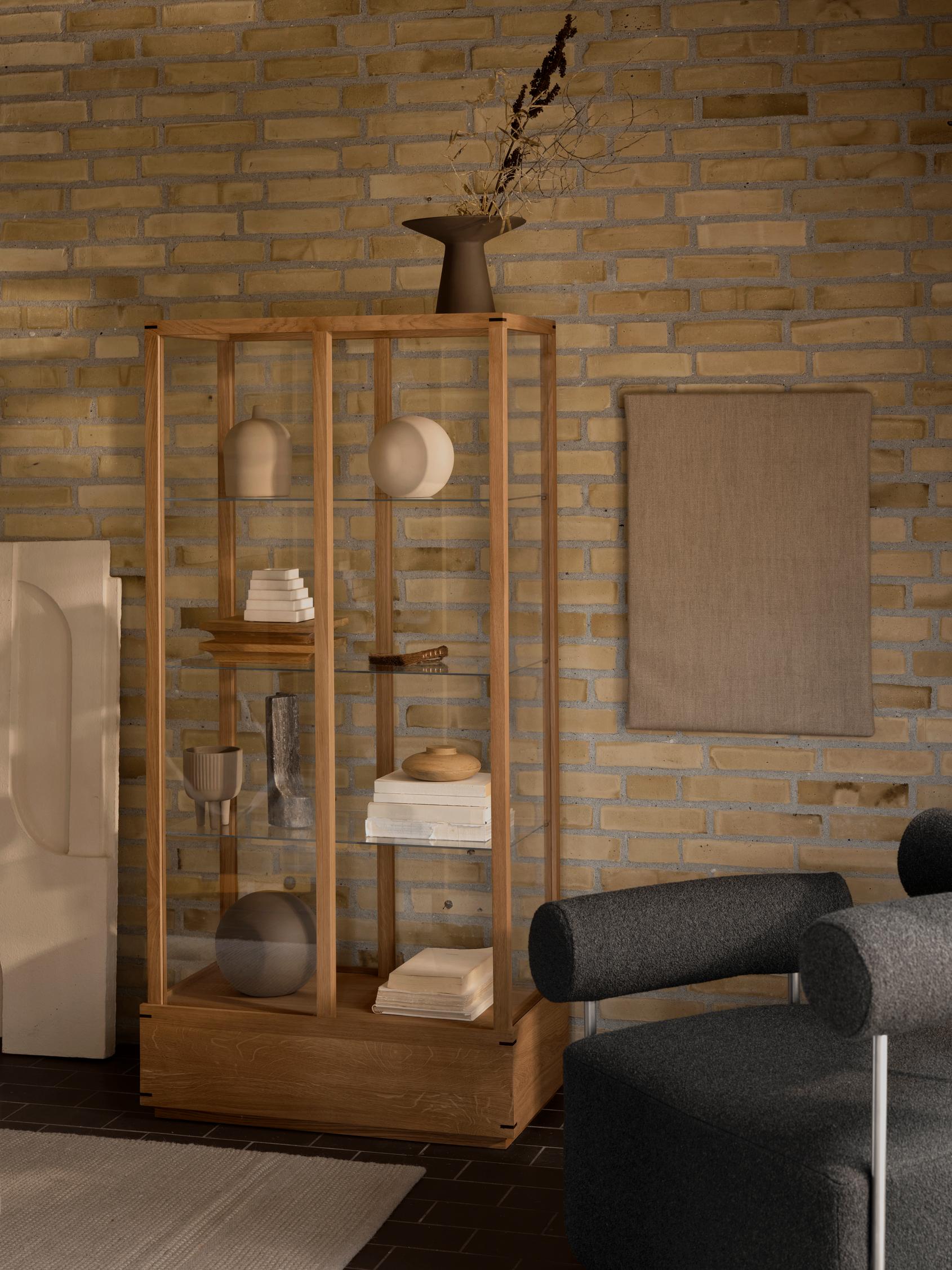 Drawing inspiration from Japanese design, Kristina Dam Studio presents a Scandinavian take on the classic display cabinet. The Japanese Cabinet Large features clean, straight lines, crafted from warm, oiled oak and tempered glass for a refined, timeless look. Its open front and left side offer flexible styling possibilities, making it ideal for showcasing art, books, and decorative objects.