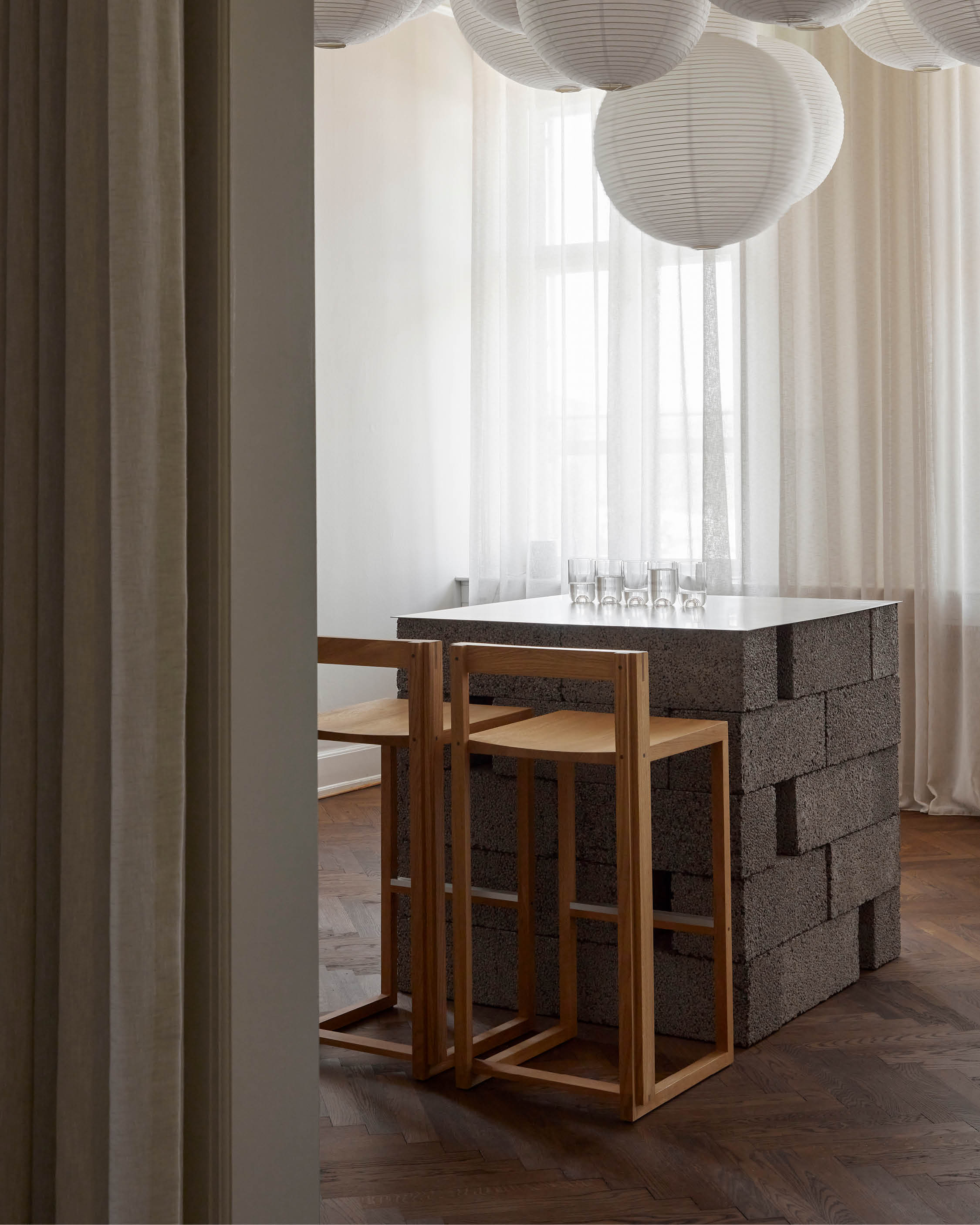 Joining the Outline Chair and Desk, the Kristina Dam Outline Bar Chair embodies the architectural Scandinavian style the Outline Collection is known for. With its minimalist, airy aesthetic, it complements any interior design effortlessly.