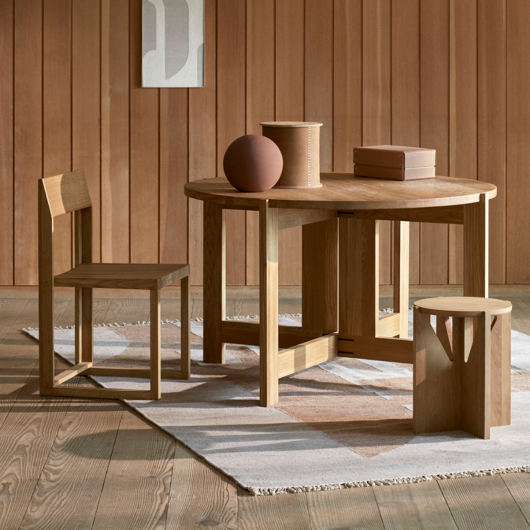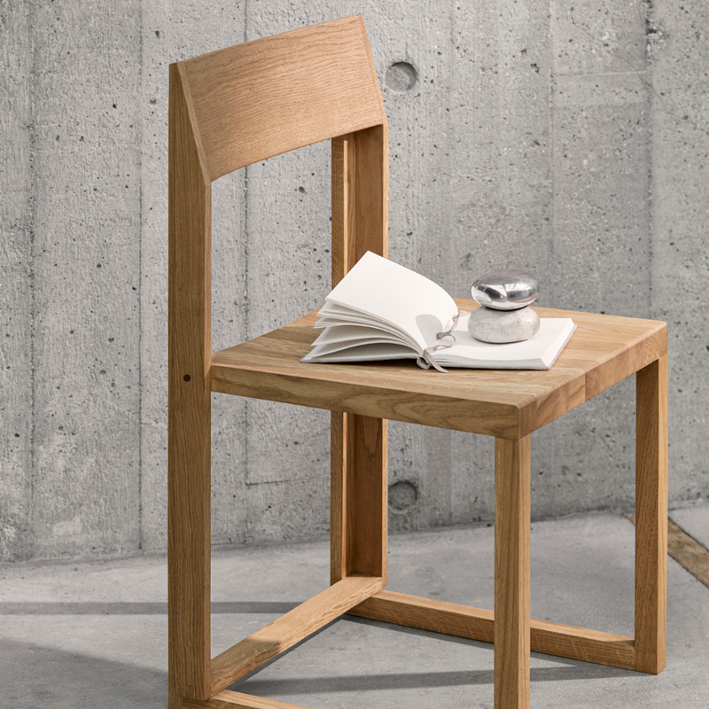 With its airy frame, the Outline Chair has a distinctive sculptural and minimal expression. The clean and simple lines of the chair's frame complement a workspace, dining area, and any other contemporary space. It's both a functional and sculptural object crafted from oiled FSC-certified oak and walnut tree details.