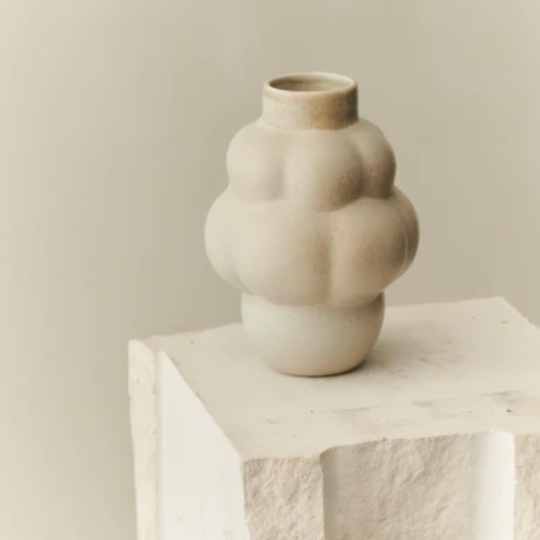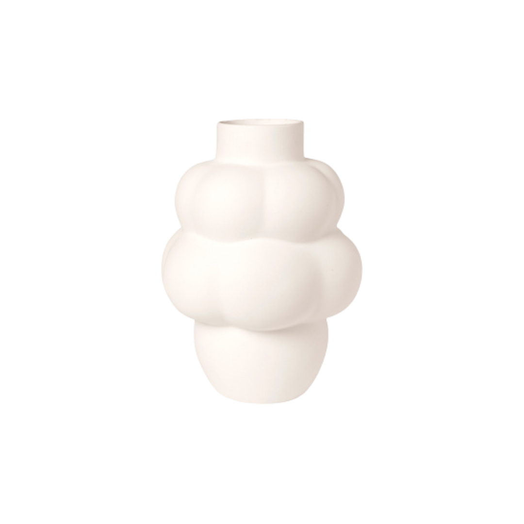 A true icon of LOUISE ROE, the Balloon Vase 04 Petit Ceramic draws inspiration from Venus of Willendorf - an ancient female figurine that celebrates fertility. With its illuminating presence, the Opal White variation elevates its environment. Note that each vase is subtly distinctive - minor variances in weight or color intensity merely characterize the genuine creation, adding to the object's character and charm.