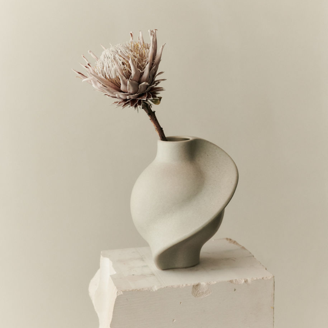 With its organic lines and gentle spirit, the LOUISE ROE Pirout Vase 01 sways alluringly alone-standing or displaying a seasonal blossom. This artistic object attains its alluring shape through skillful craftsmanship; each variation is individually hand-molded.