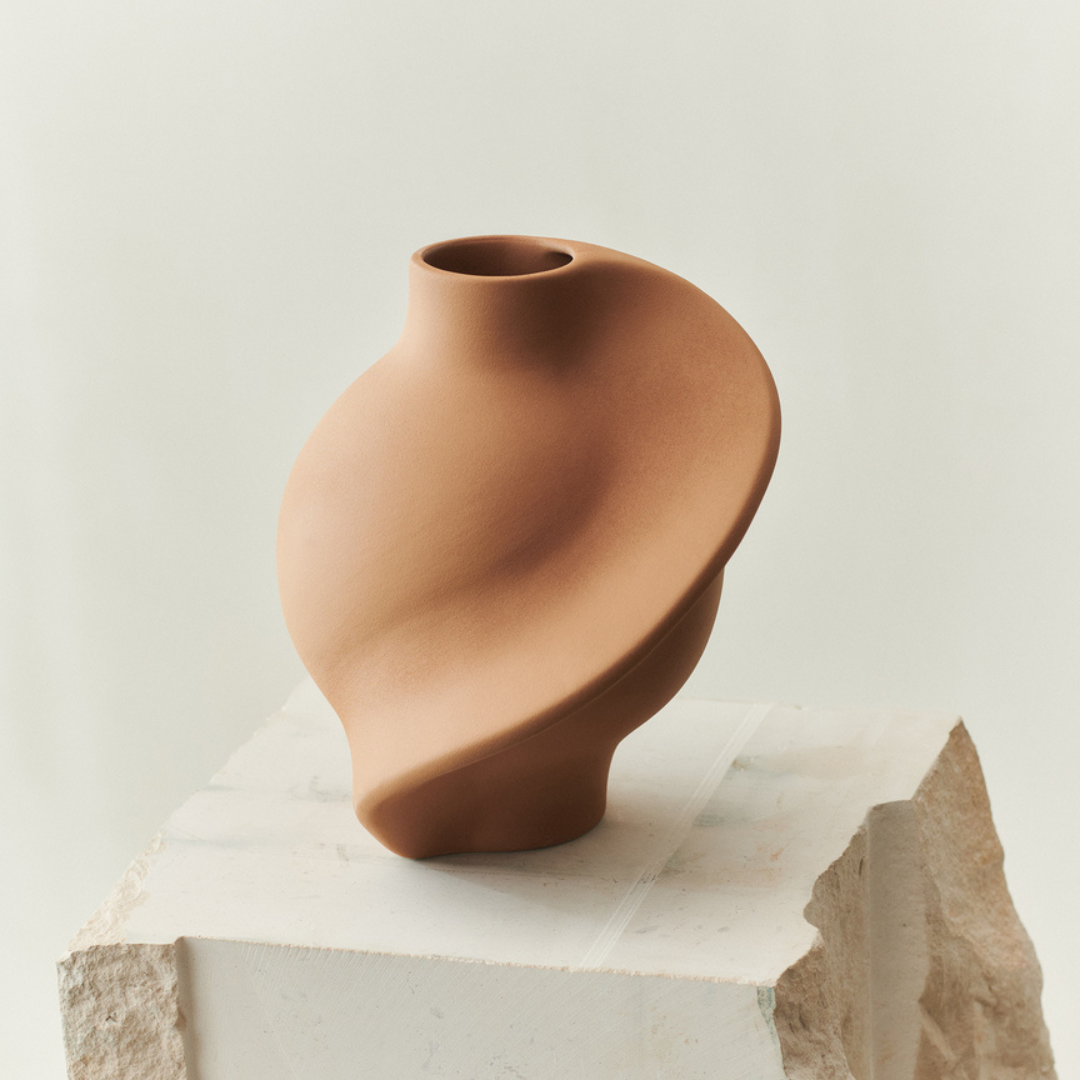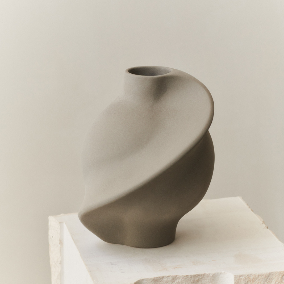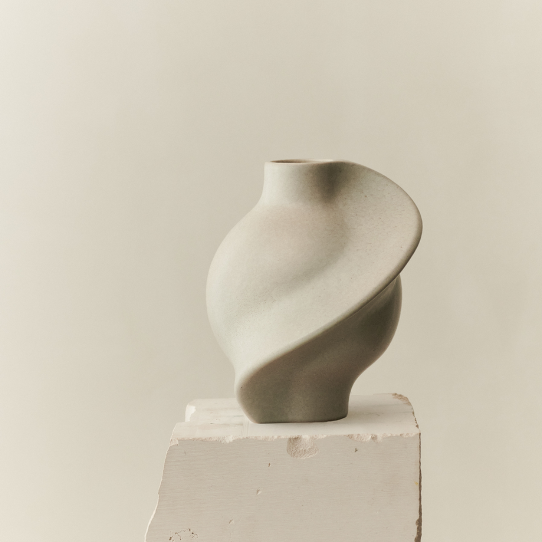 With its organic lines and gentle spirit, the LOUISE ROE Pirout Vase 02 sways alluringly alone-standing or displaying a seasonal blossom. This artistic object attains its alluring shape through skillful craftsmanship; each variation is individually hand-molded.