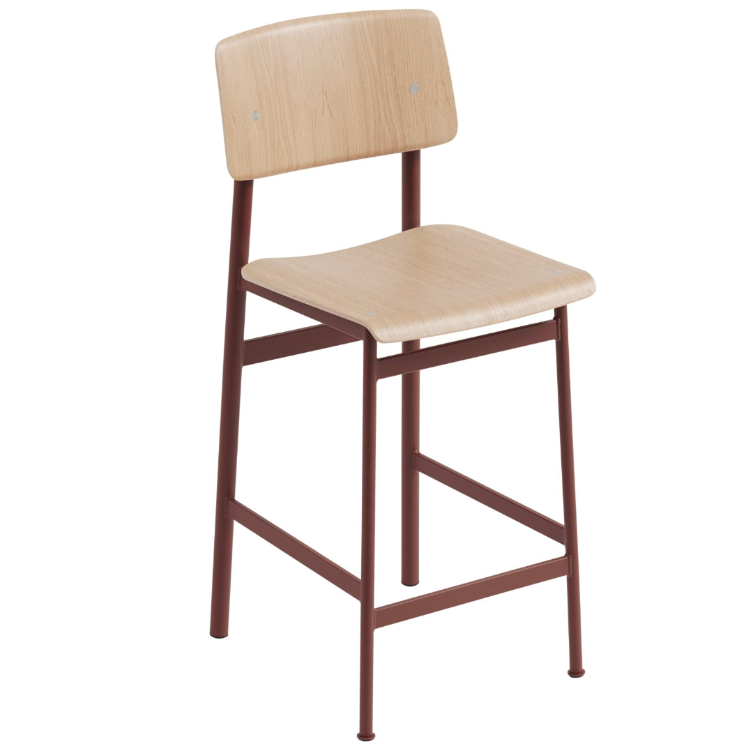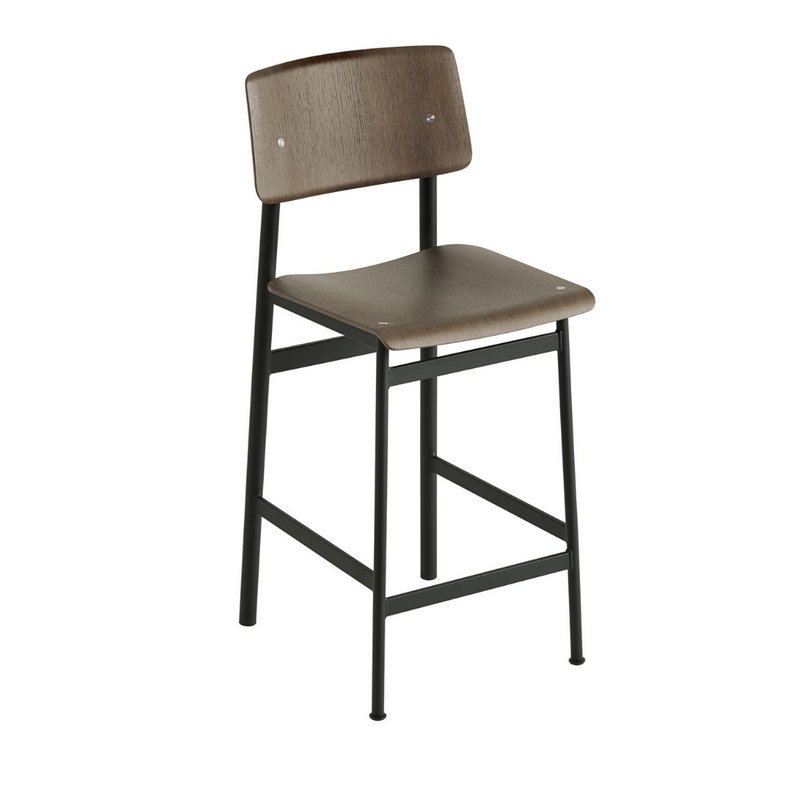 The MUUTO Loft Counter Stool has a powder coated steel frame with a beech core and veneer body, seat and back.