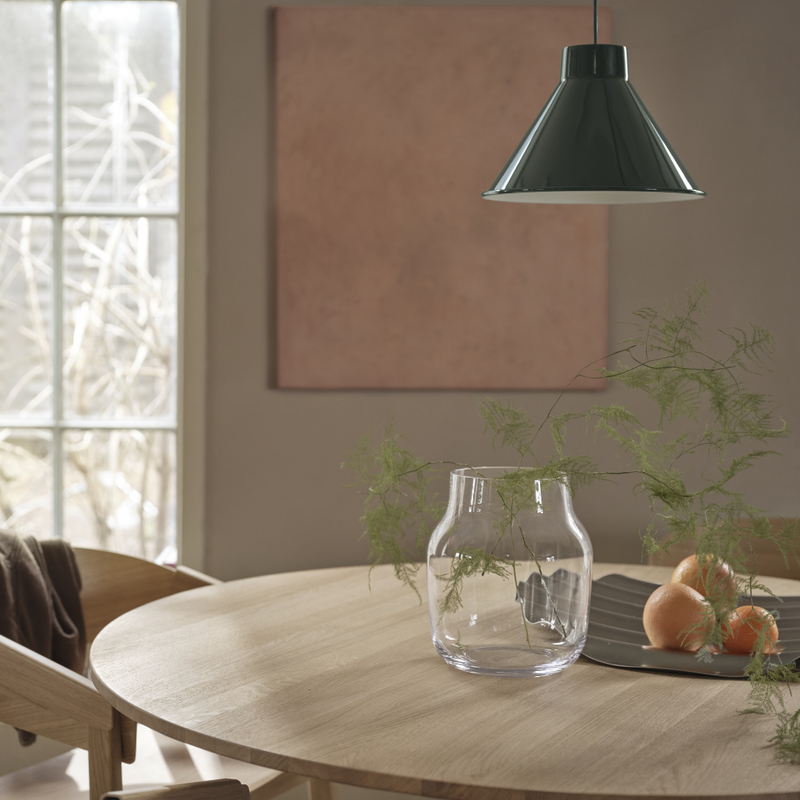 The MUUTO Silent Vase series is Scandinavian design at its most subtle. This humble yet decorative object looks beautiful with or without flowers or greenery. Comes in three sizes and three colors: clear, burnt orange, and dark green.
